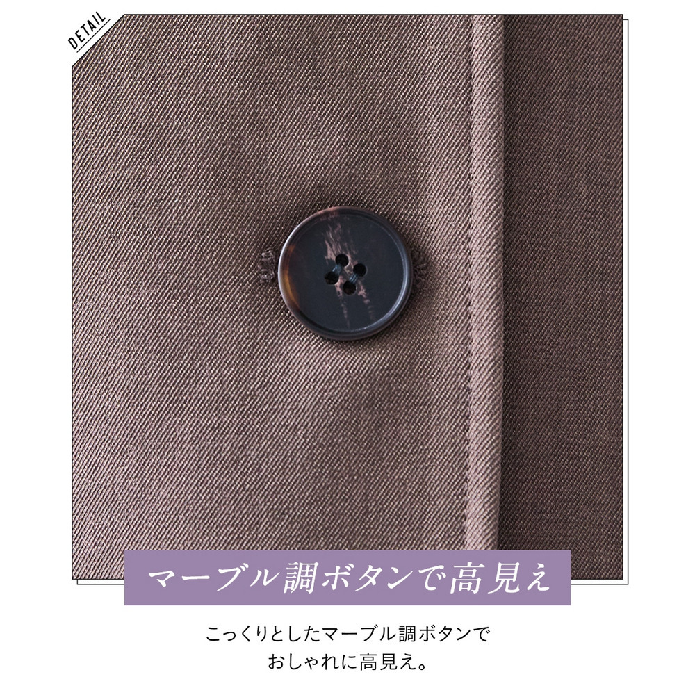 | 素材 | ポリエステル97%・ポリウレタン3% [裏地]無 前ボタン開き ポケット前2つ デザインの特性上ゆったりとしたシルエットとなっております。 透け感:透けにくい 伸縮性:あり 生地の厚み:普通 光沢感:なし 裏地:なし ポケット:あり 季節:春・秋 シルエット:ゆったり |