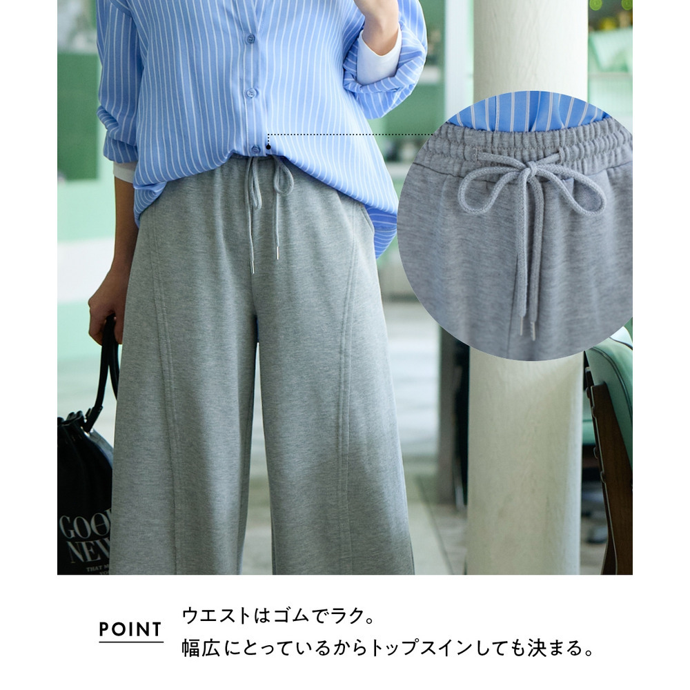 ウエストはゴムとドローストリングで調整可能なので、リラックスした履き心地です。