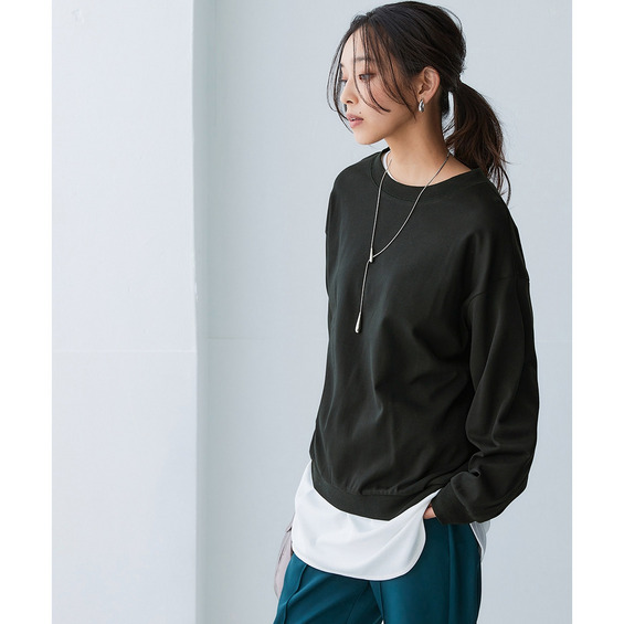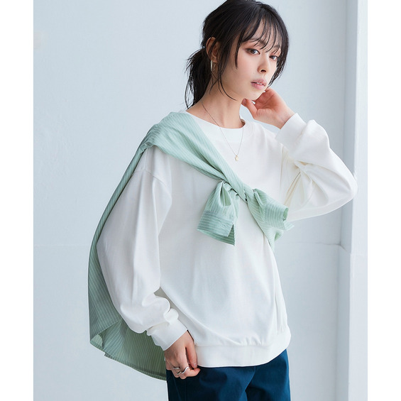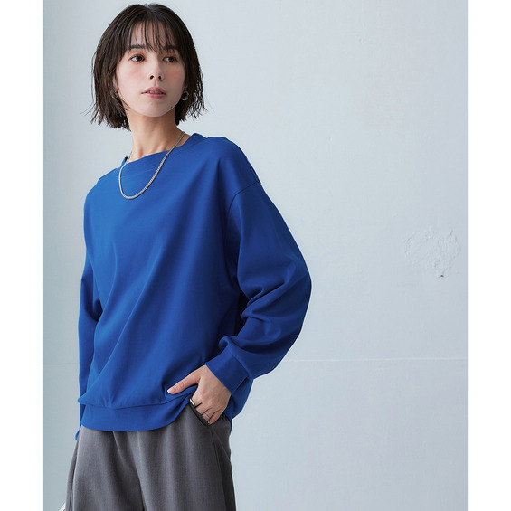 広めの襟ぐりで顔周りもすっきり!でも襟元がヨコに開きすぎないので、品のある着こなしが叶います。