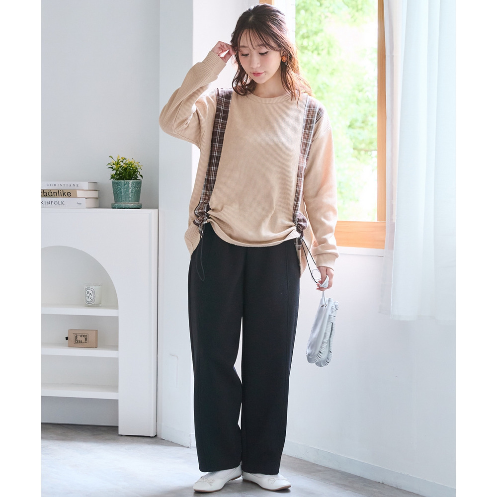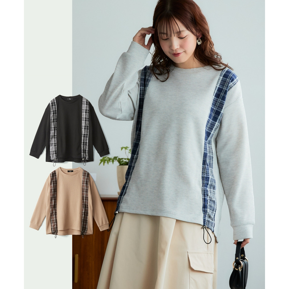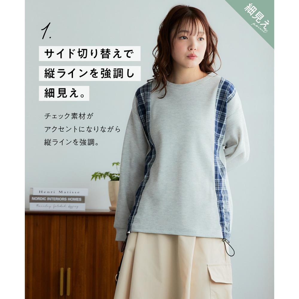 • 縦チェック切替シャーリングワッフルトップス 大きいサイズ1