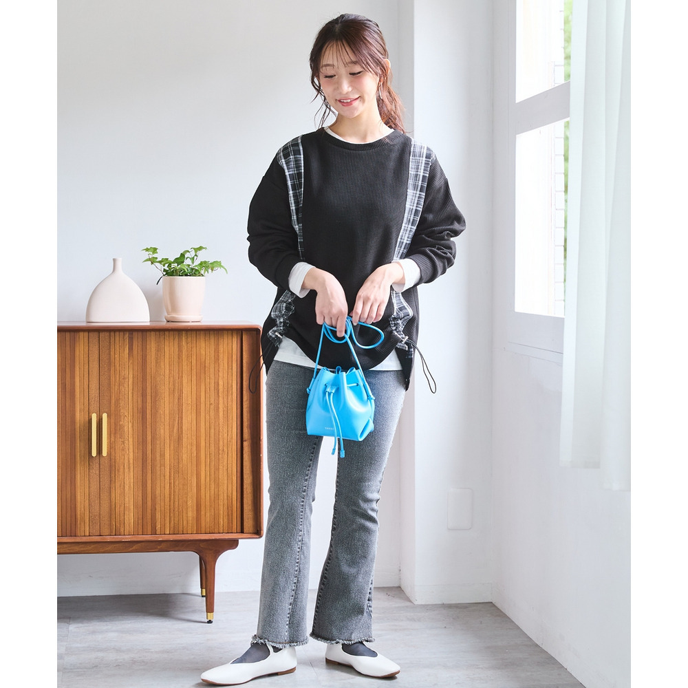 • 縦チェック切替シャーリングワッフルトップス 大きいサイズ11