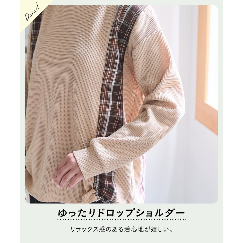 • 縦チェック切替シャーリングワッフルトップス 大きいサイズ19