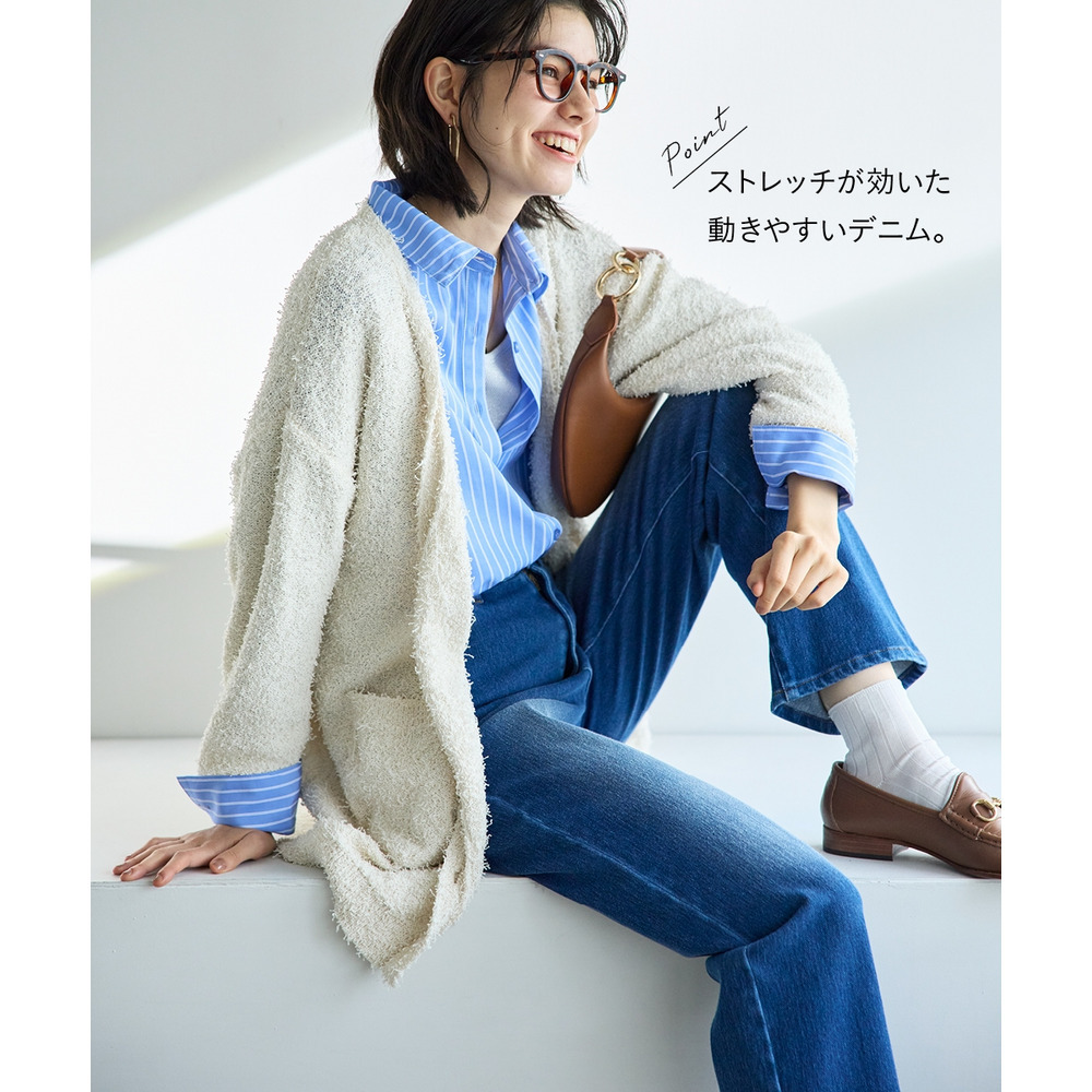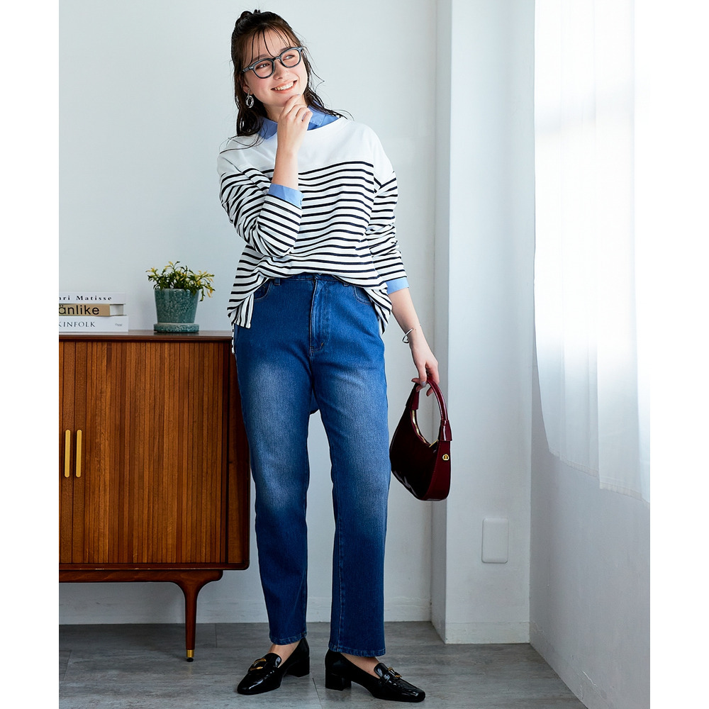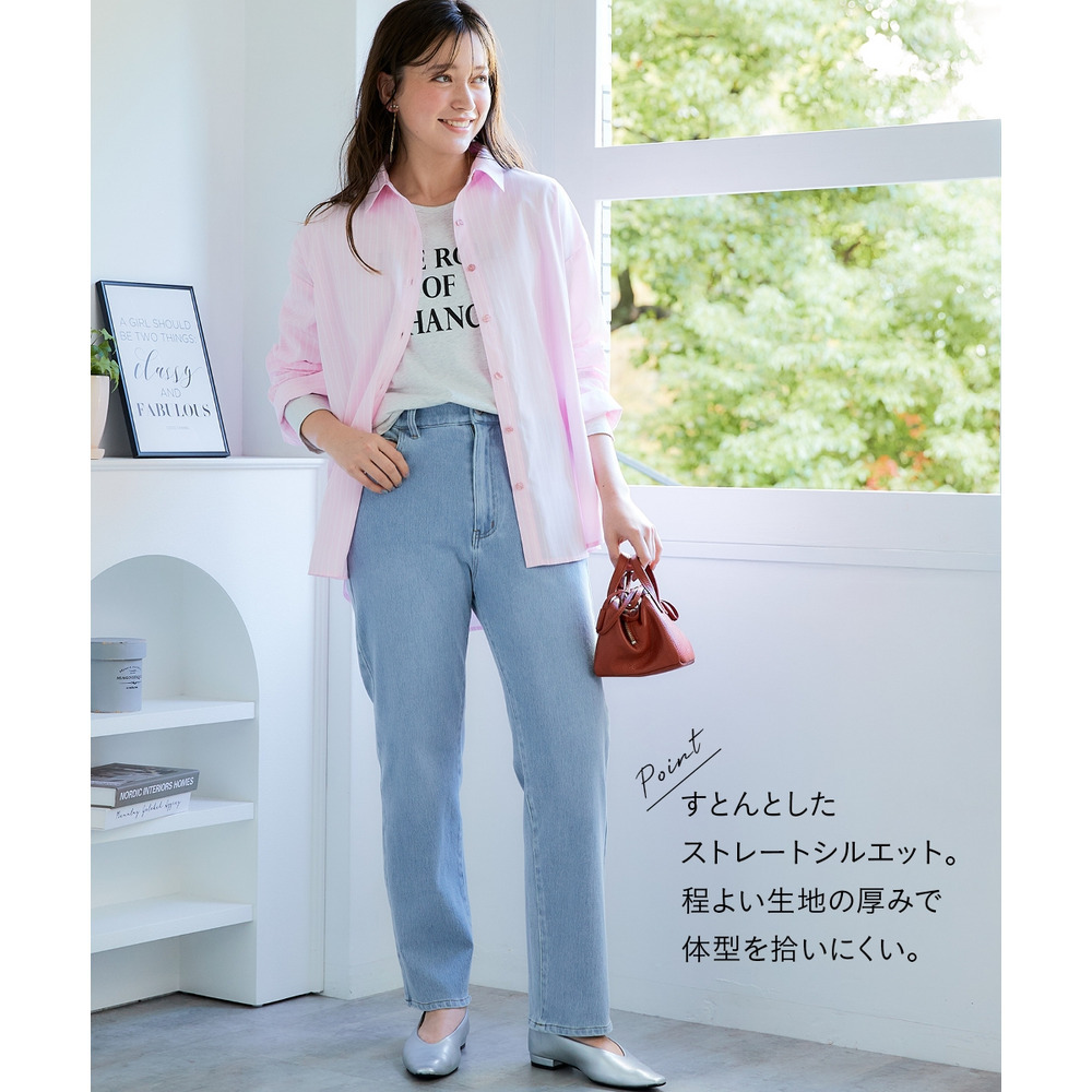 よく伸びるストレートデニムパンツ(ゆったりヒップ) 大きいサイズ