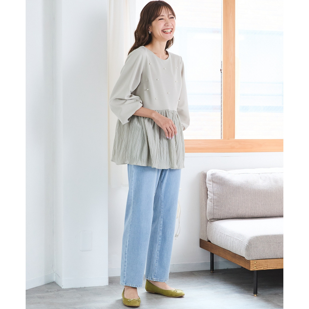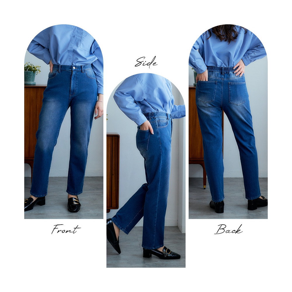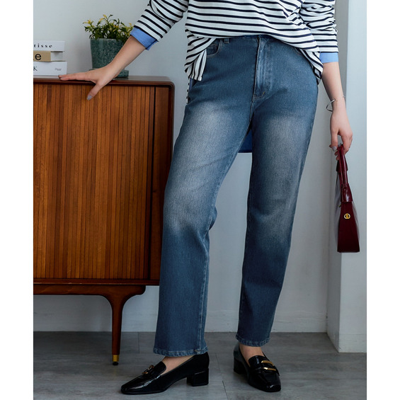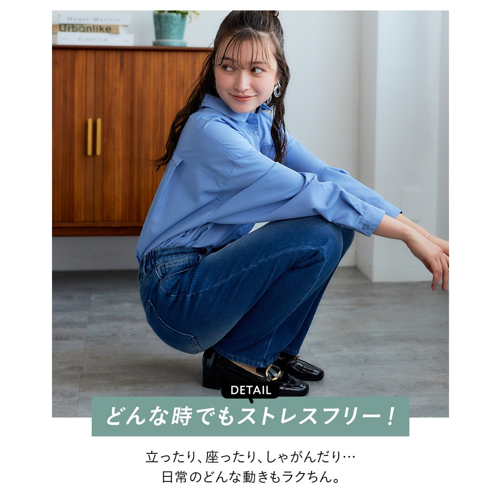 よく伸びるストレートデニムパンツ(ゆったりヒップ) 大きいサイズ