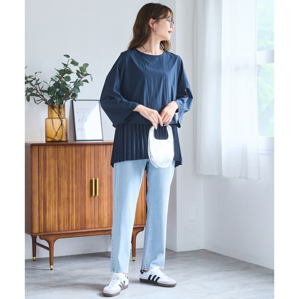 裾はロールアップしても素敵に決まる丈感で、様々なシューズとの相性も抜群です。
