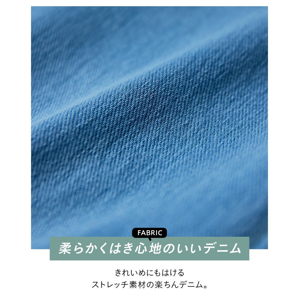 ストレッチの効いたデニム素材を使用しており、動きやすさ抜群。