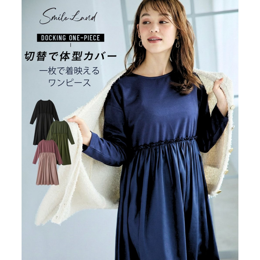 切り替えデザインでスタイルアップを叶えるドッキングワンピース。