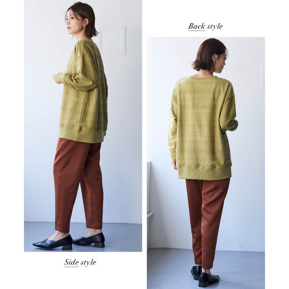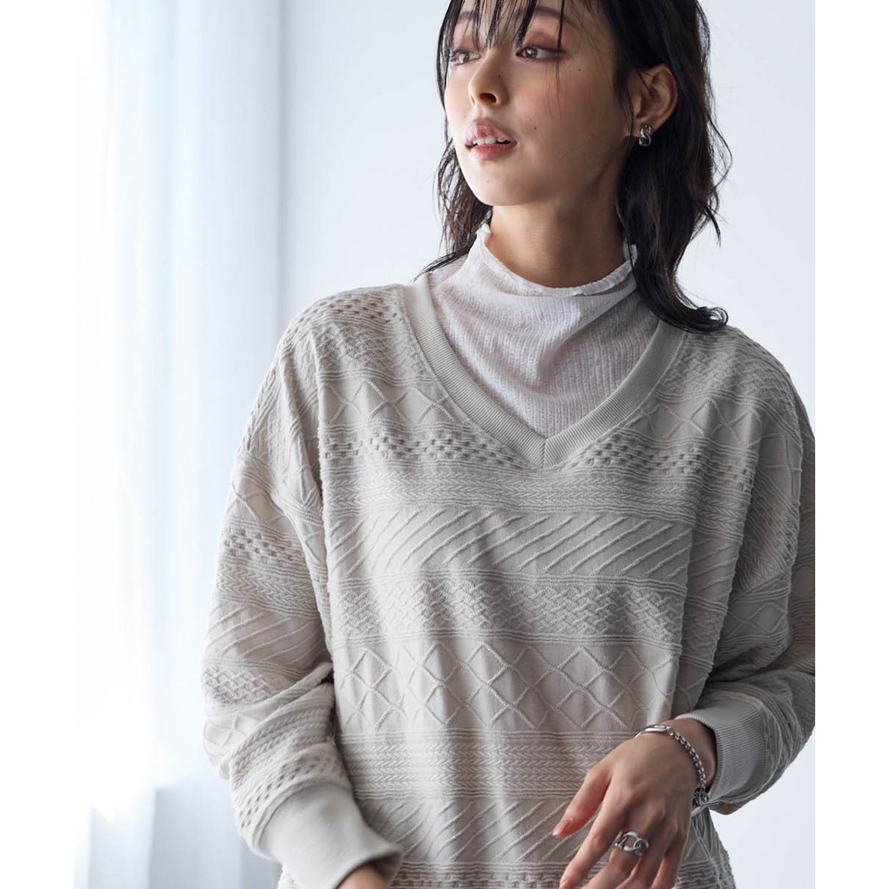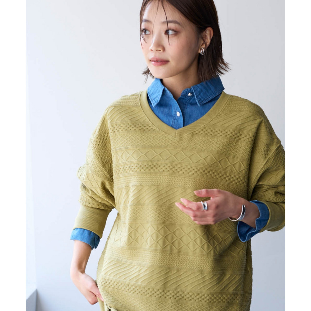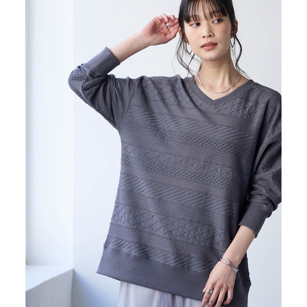 高見えする織柄がポイントのニット風カットソー。