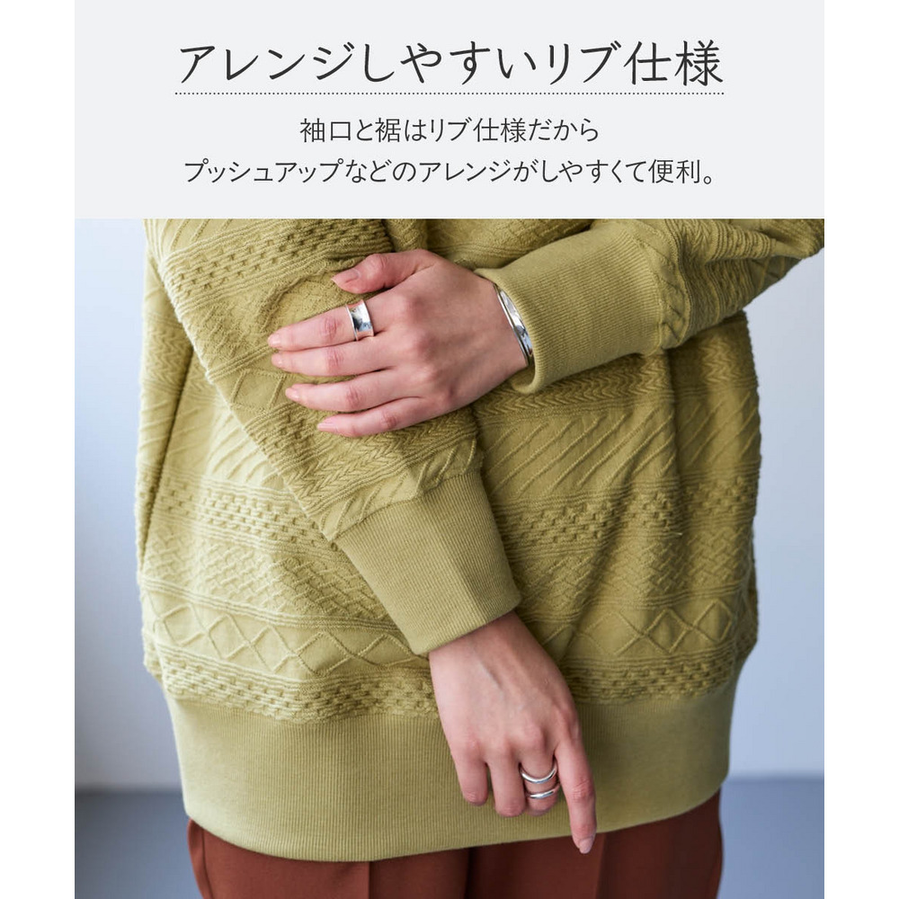 ポリエステル混なので洗濯後も乾きやすく、ニットでは気になる引っ掛かりや糸の引き出しも心配ありませんのでお手入れ簡単です。