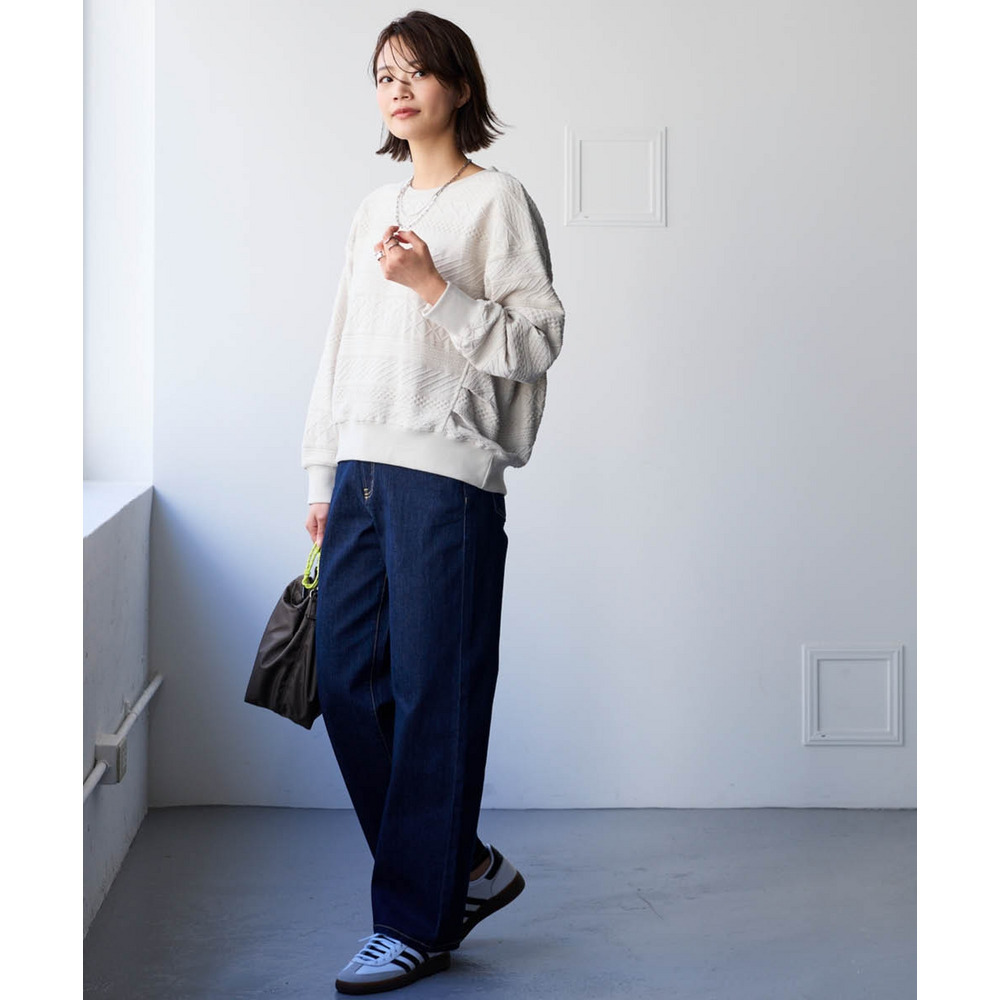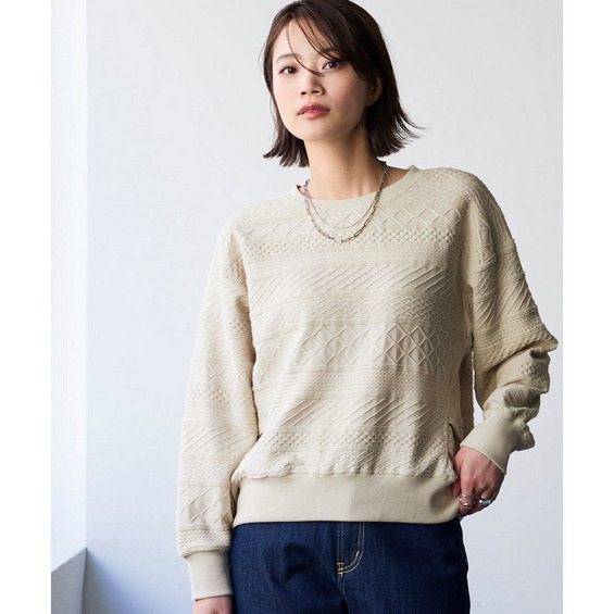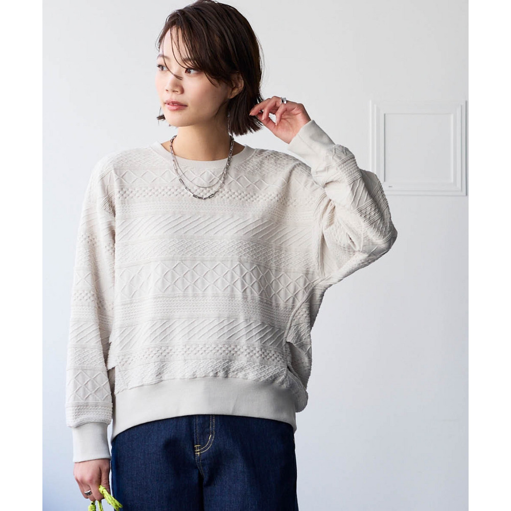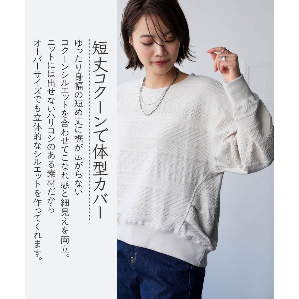 • コットンブレンドニットライクジャガードクロップド丈コクーントレーナー 大きいサイズ10