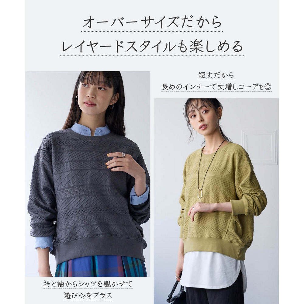素材 品質=[本体]ポリエステル65%・綿35%[リブ部]ポリエステル63%・綿31%・ポリウレタン6%br> 透け感:なし 伸縮性:あり 生地の厚み:普通 光沢感:なし 季節:春・秋・冬向き シルエット:ゆったり