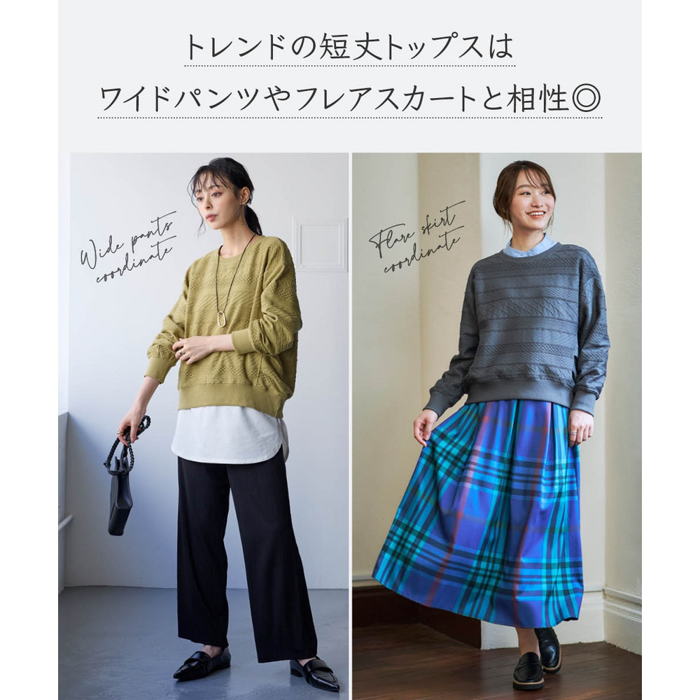 • コットンブレンドニットライクジャガードクロップド丈コクーントレーナー 大きいサイズ11