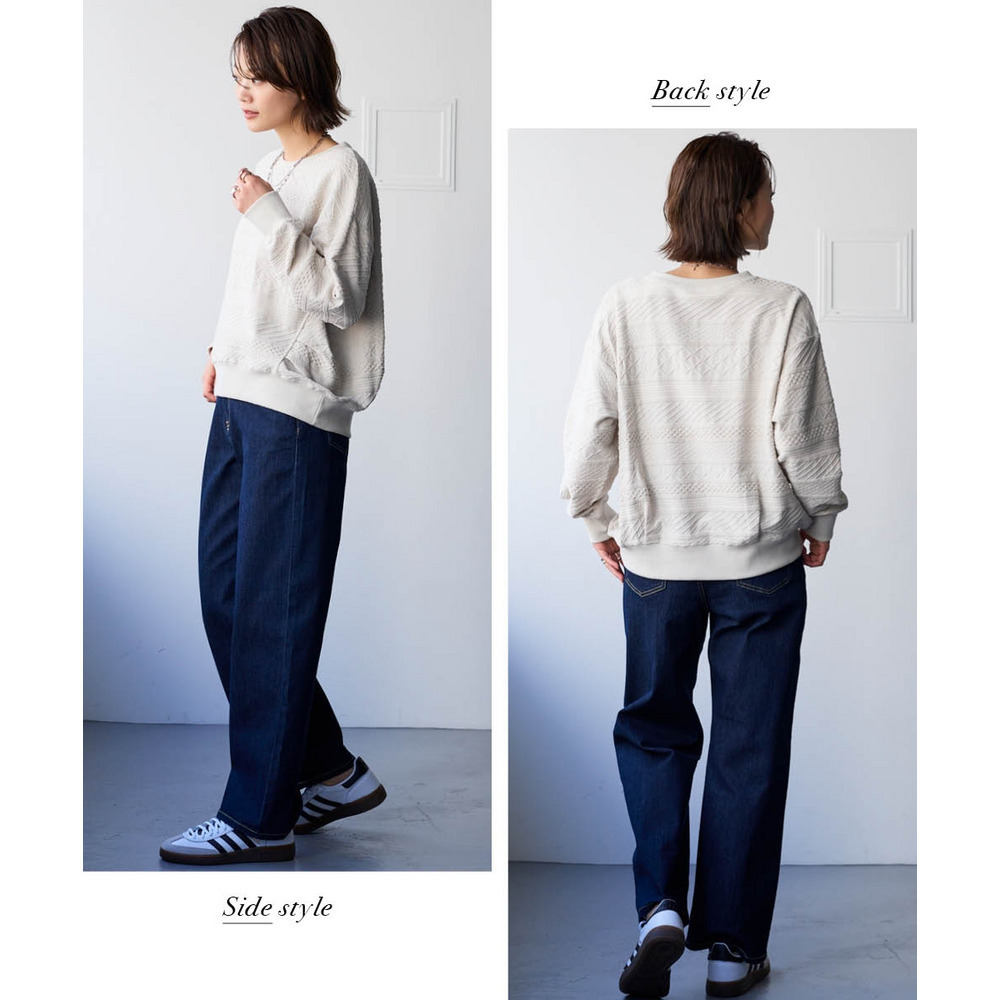 • コットンブレンドニットライクジャガードクロップド丈コクーントレーナー 大きいサイズ24