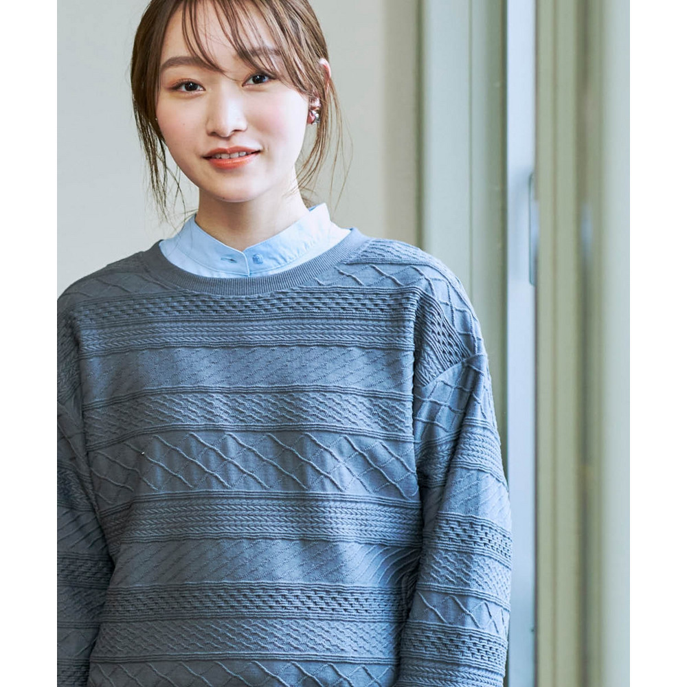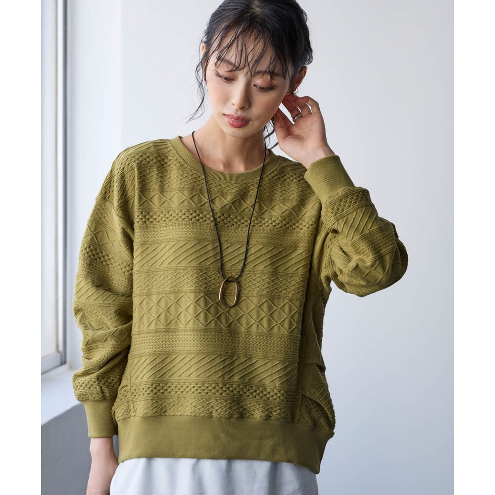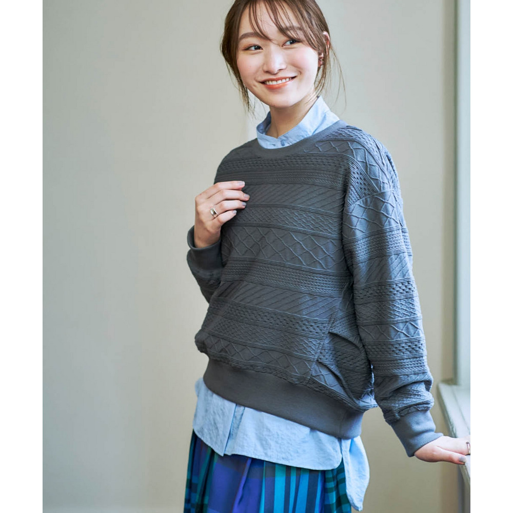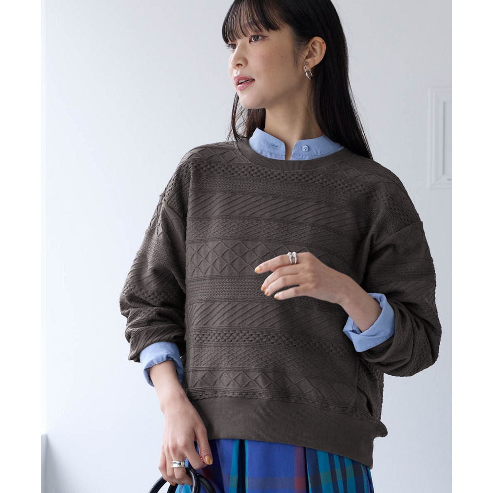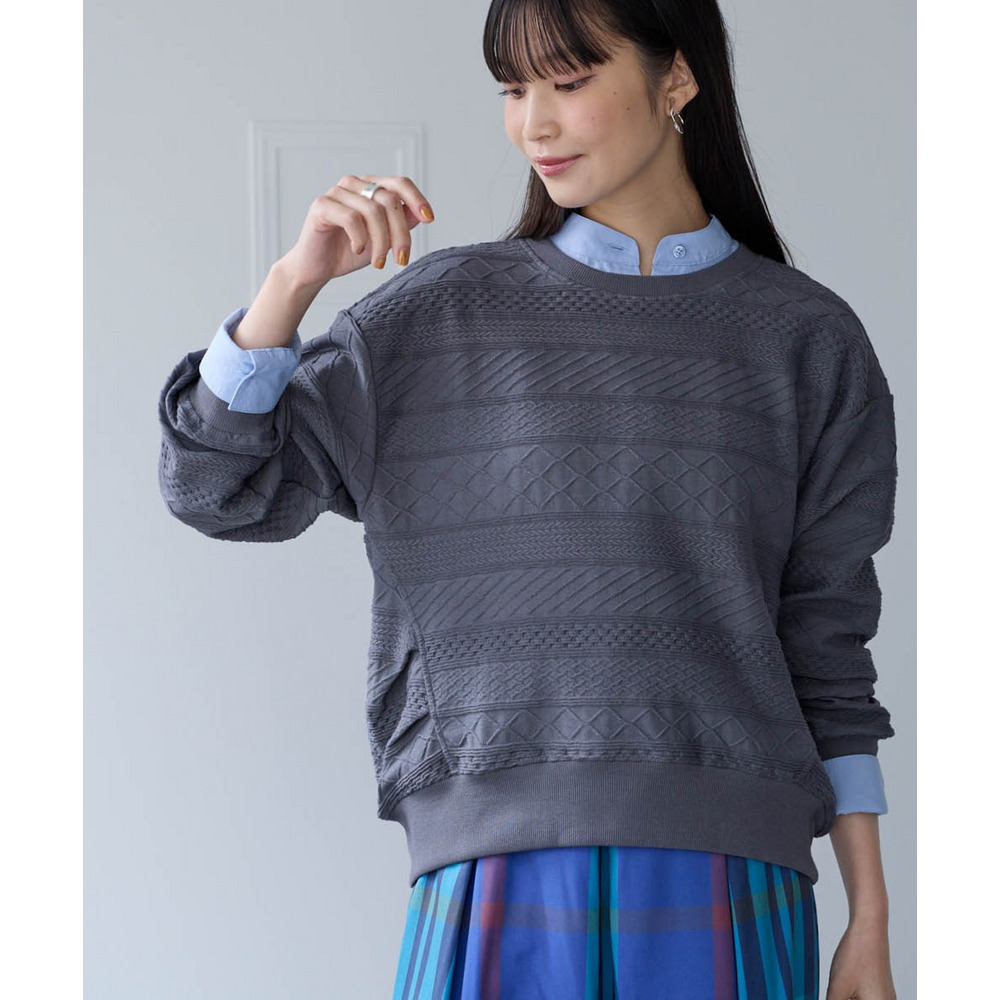 • コットンブレンドニットライクジャガードクロップド丈コクーントレーナー 大きいサイズ7