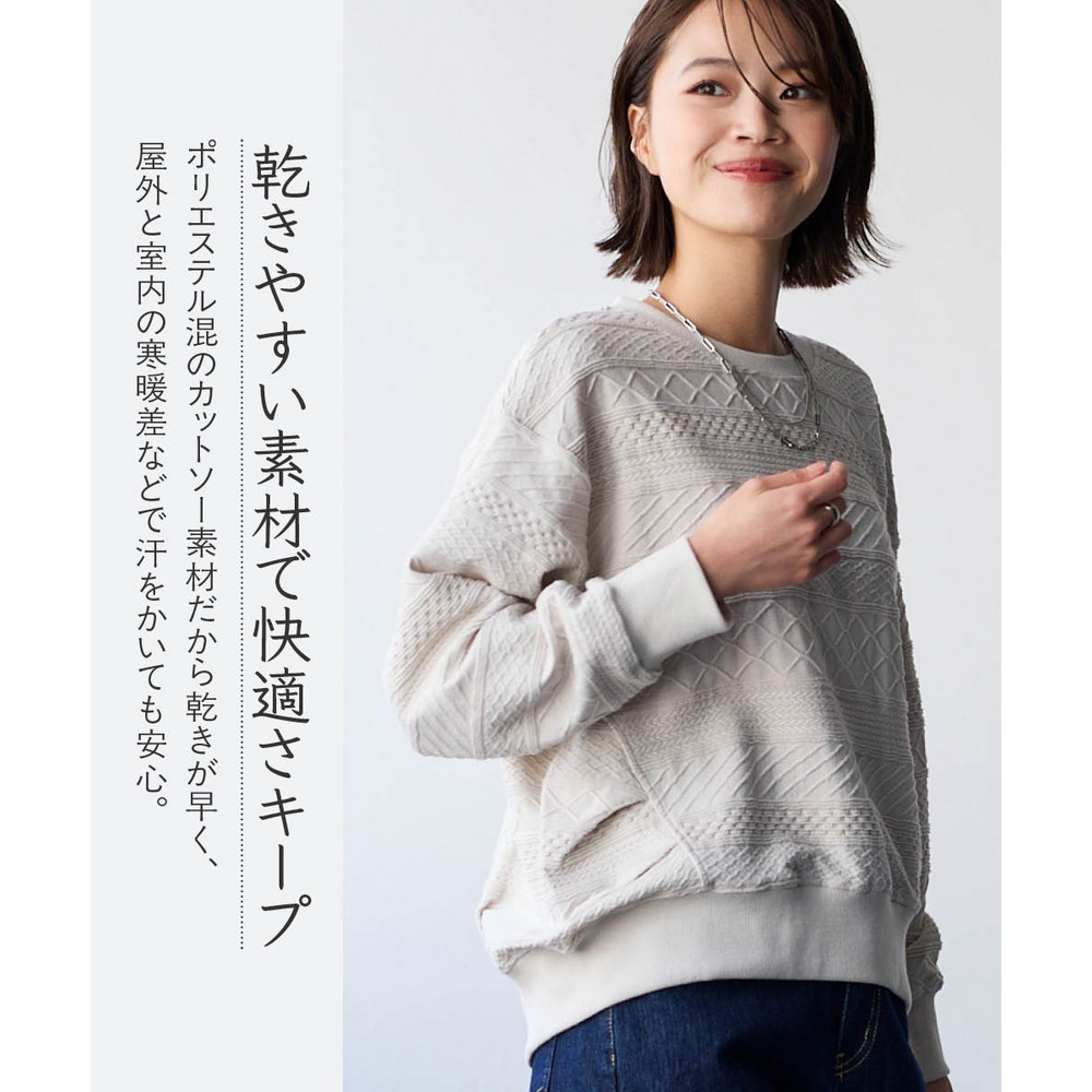 • コットンブレンドニットライクジャガードクロップド丈コクーントレーナー 大きいサイズ3