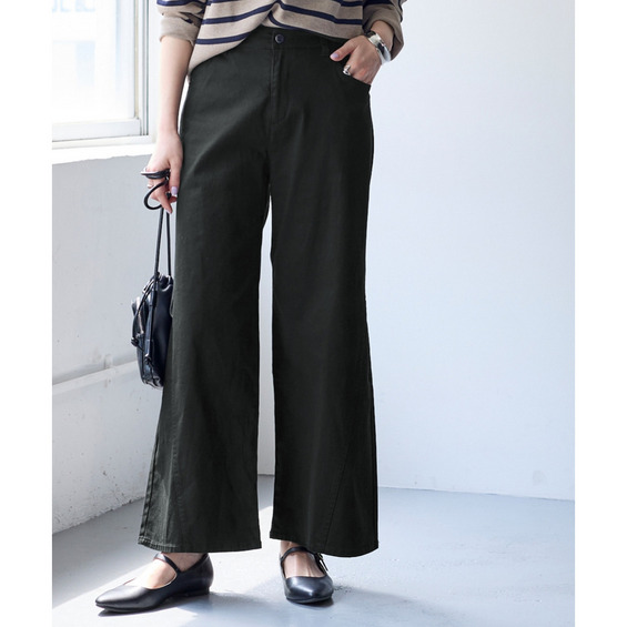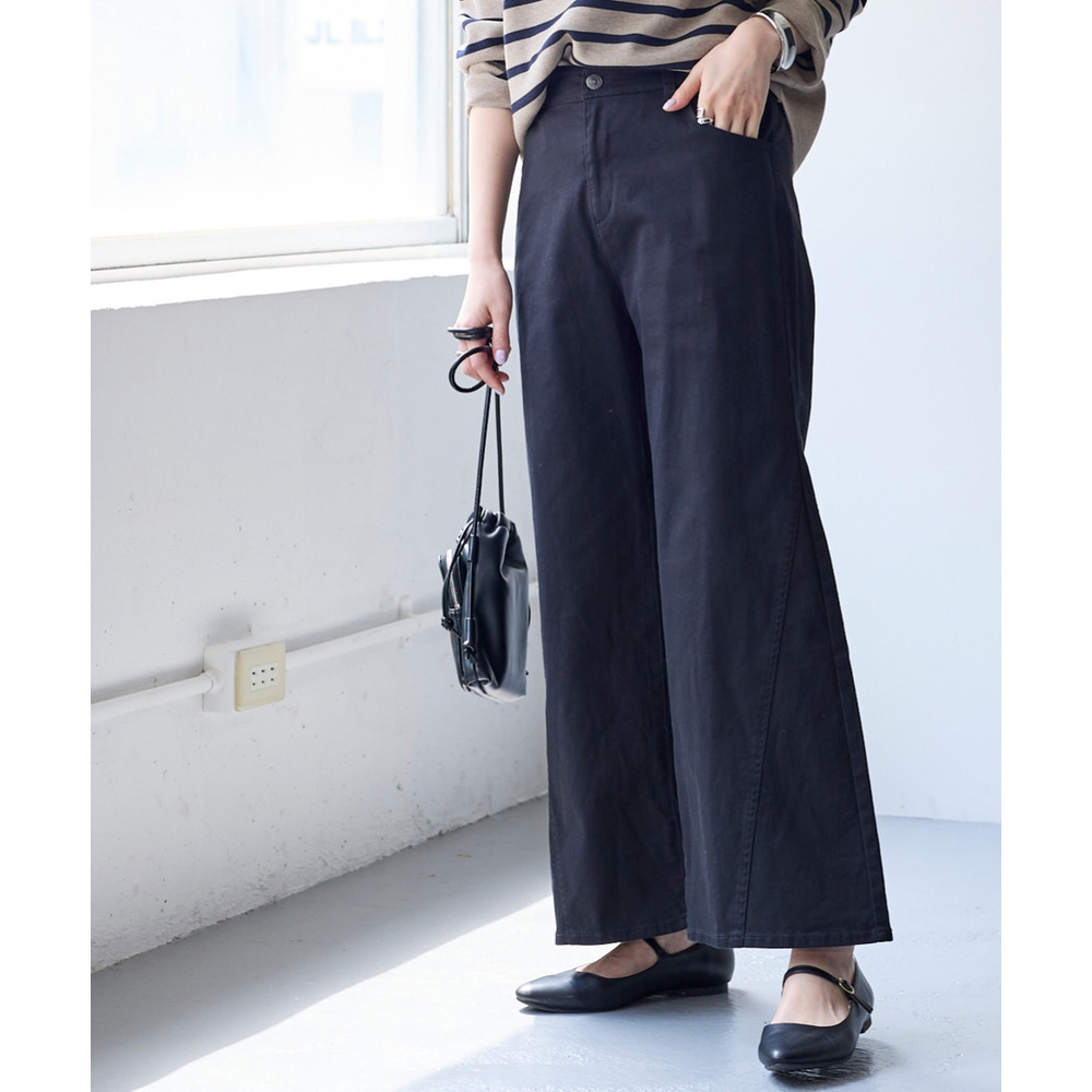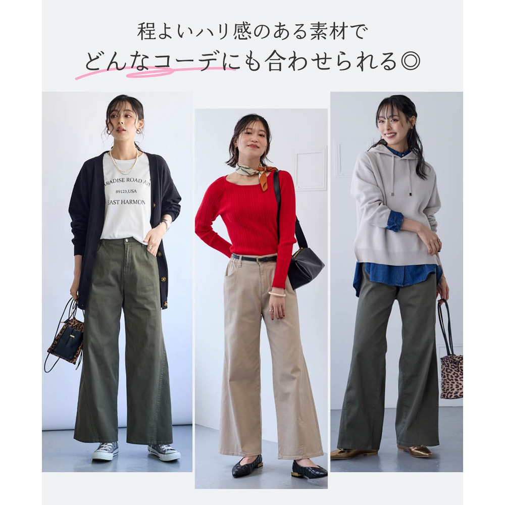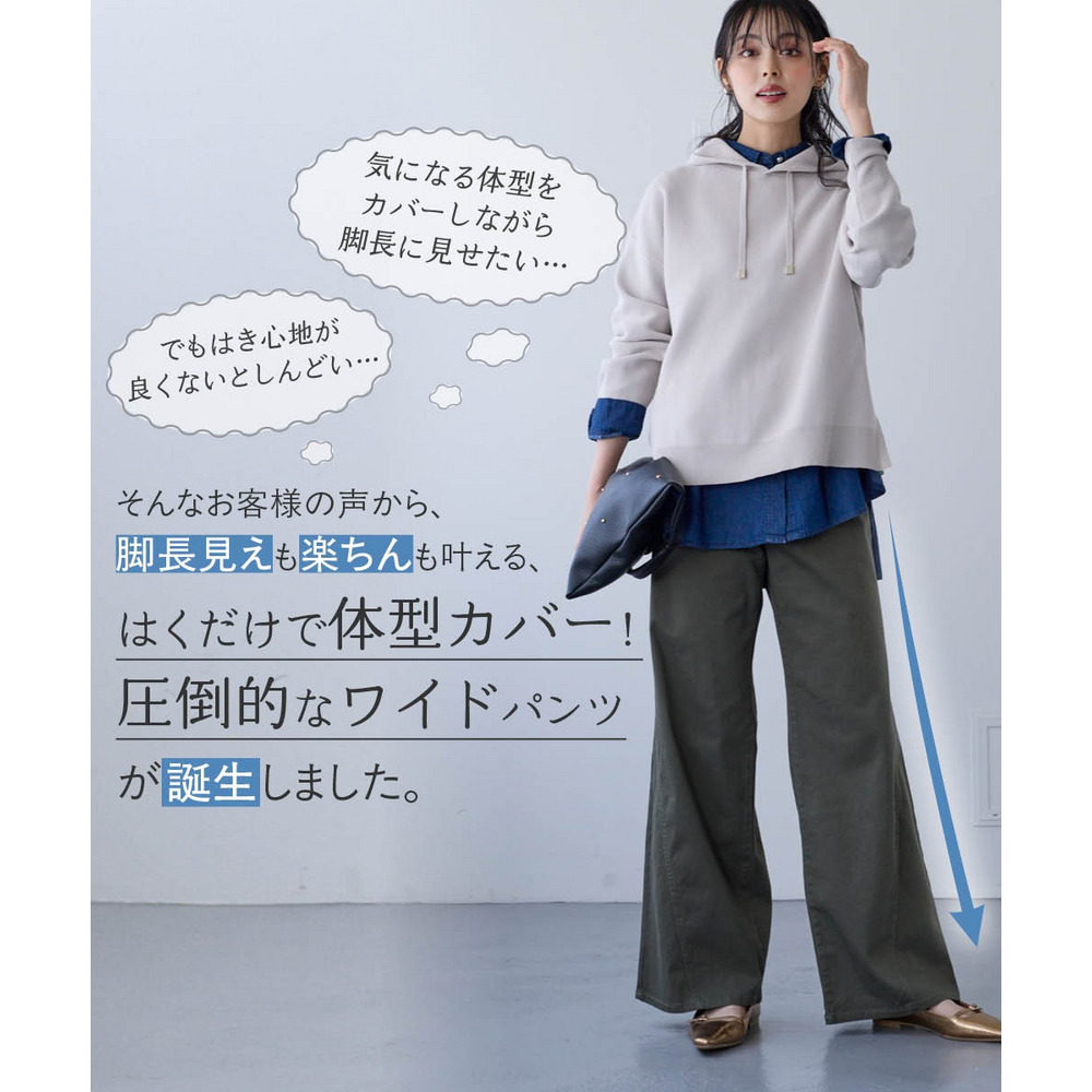 ワイドなのに脚長効果!すっきりとした広がり過ぎないシルエットで全方位体型カバーのワイドパンツが登場!!