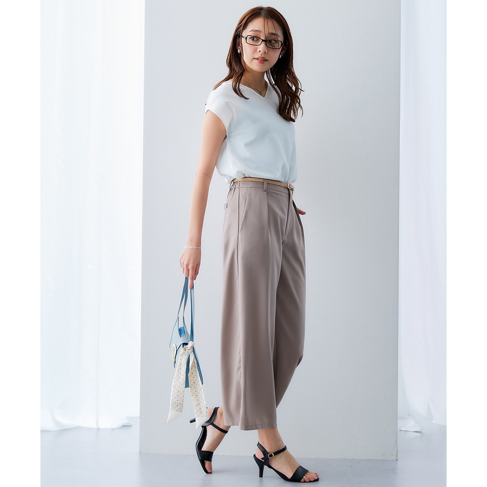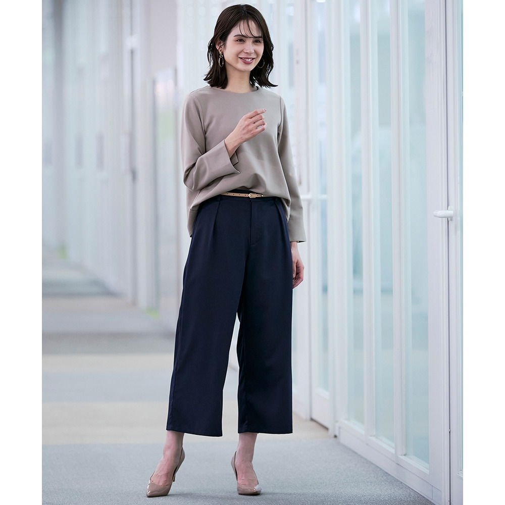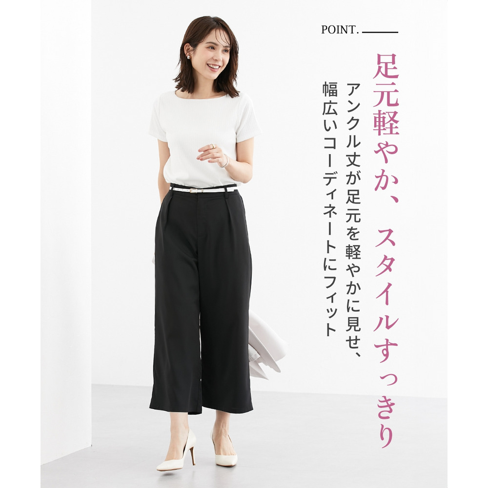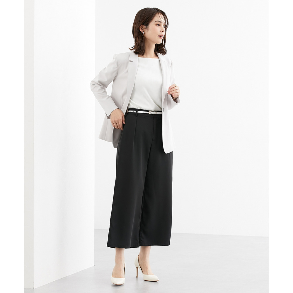お仕事コーデに必須のすっきりワイドパンツ。