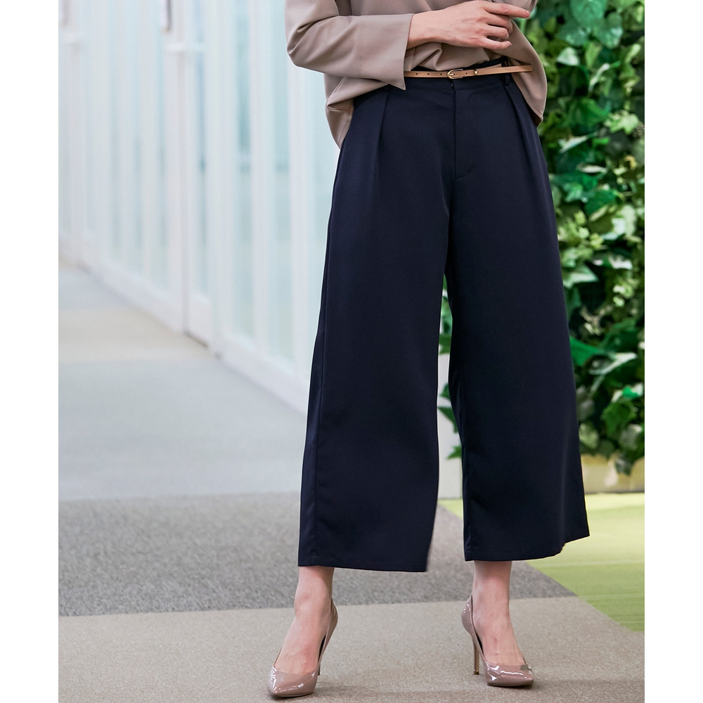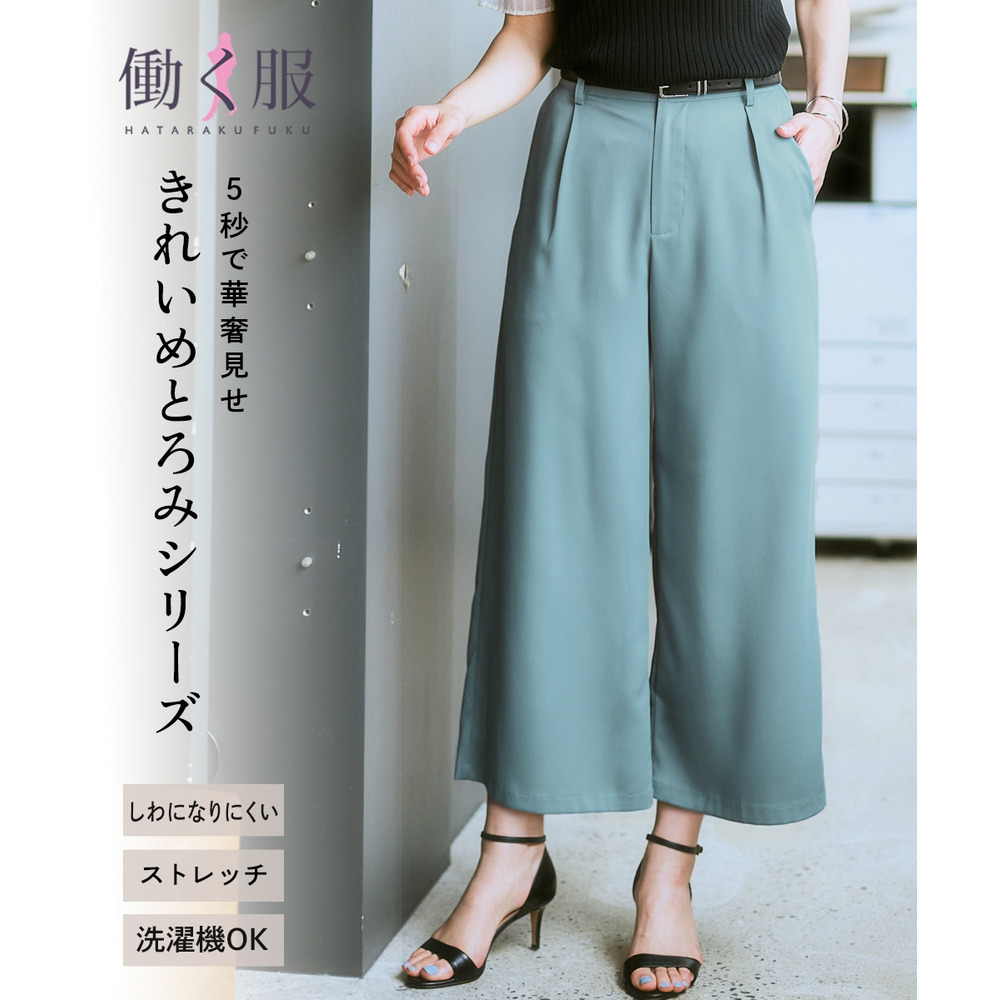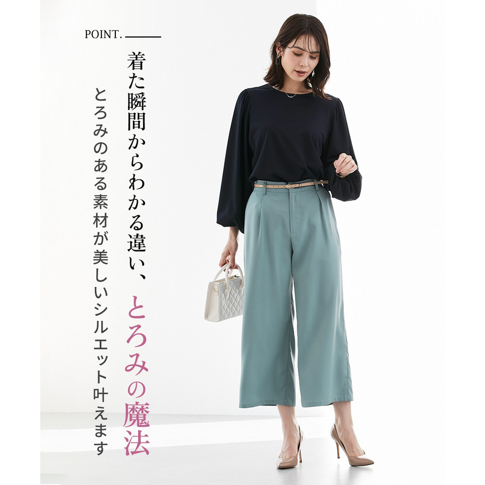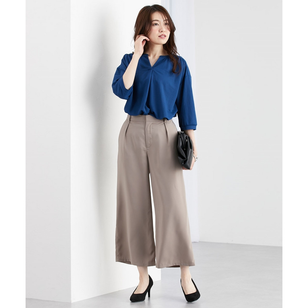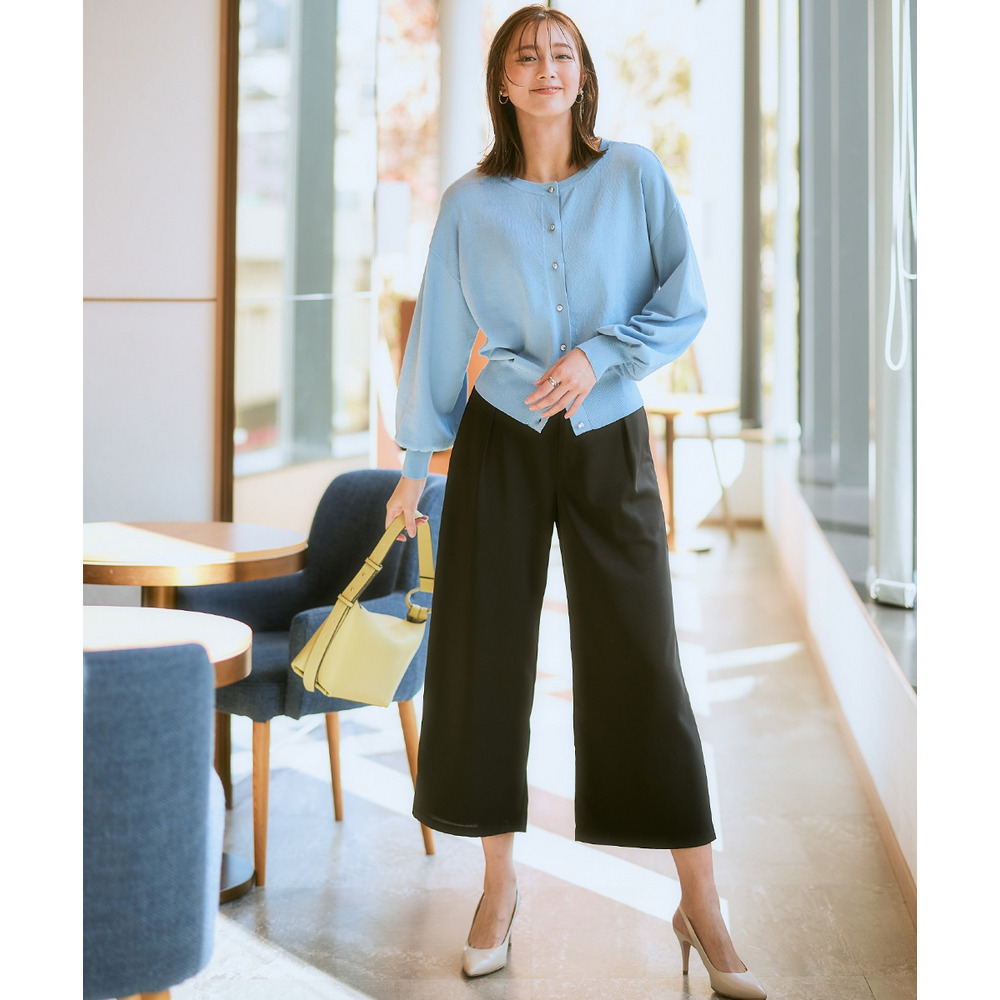お仕事コーデに必須のすっきりワイドパンツ。