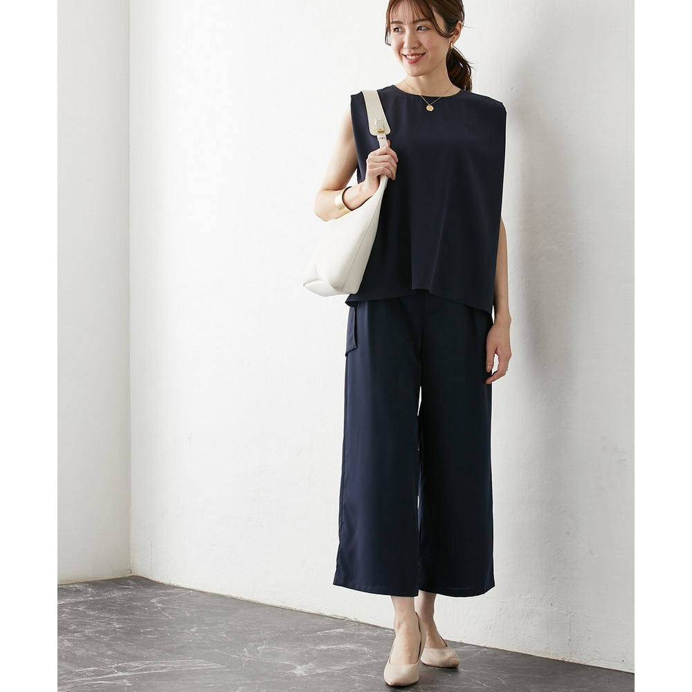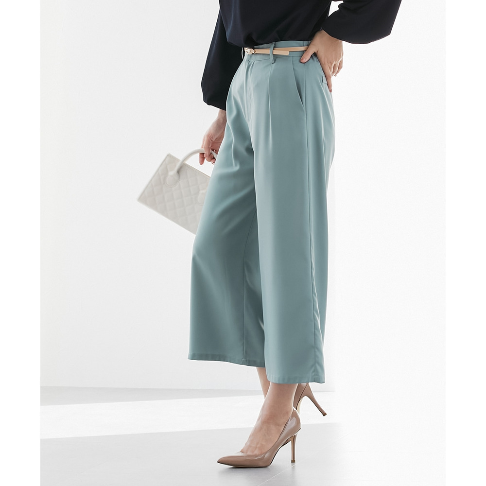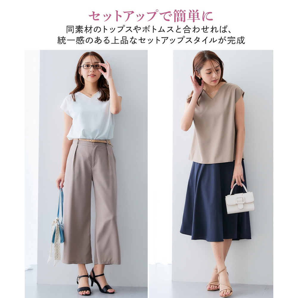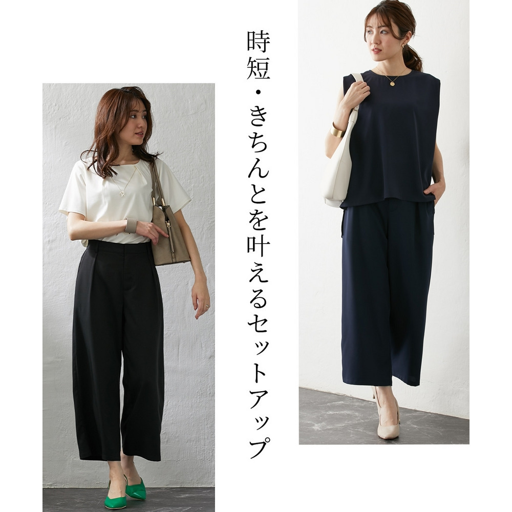お仕事コーデに必須のすっきりワイドパンツ。