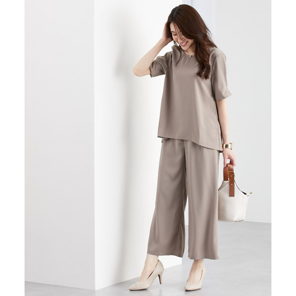 同素材のトップスを合わせて上下セットアップでも、それぞれ単品でも着回し自在