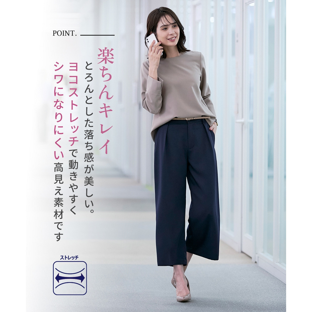 【しわになりにくい・ストレッチ】アンクル丈ワイドパンツ(とろみシリーズ) 大きいサイズ