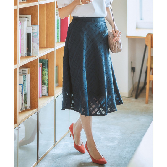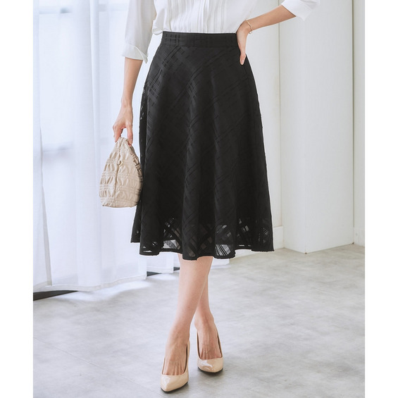 シアーチェックフレアスカート 大きいサイズ