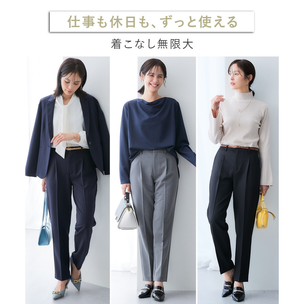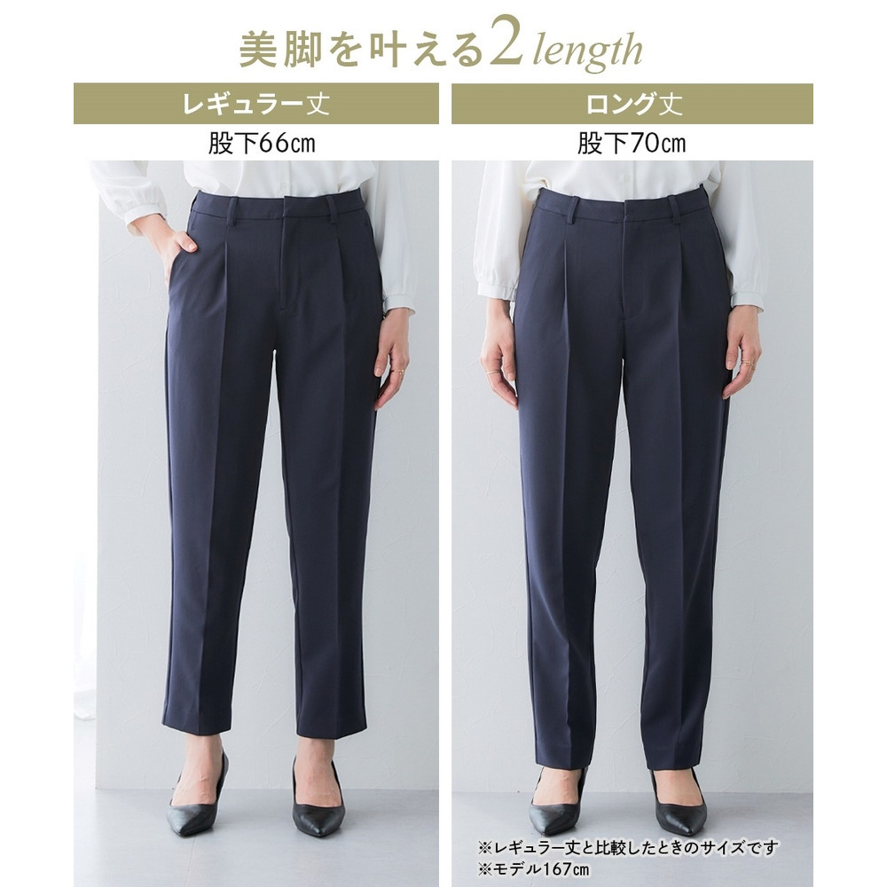 ・センタープレス×前タックで美脚&きちんと見えを両立