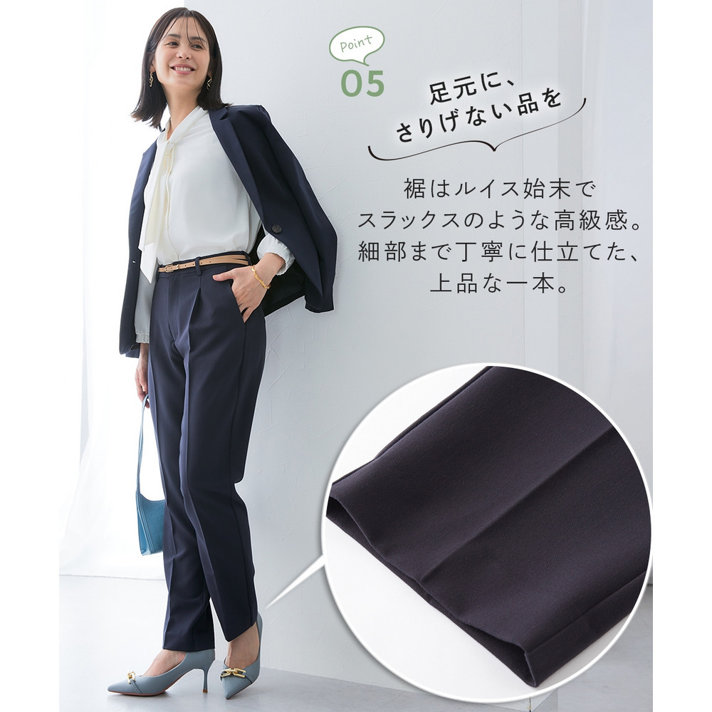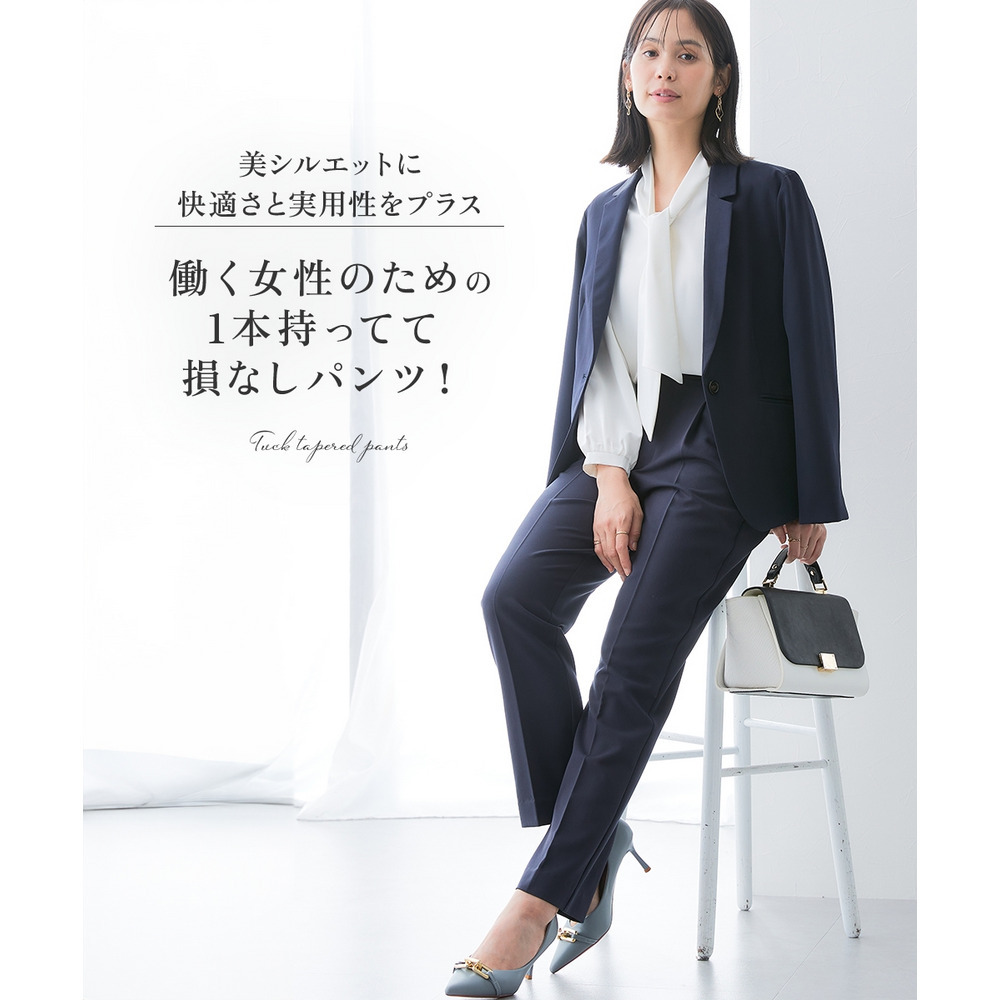 ・センタープレス×前タックで美脚&きちんと見えを両立