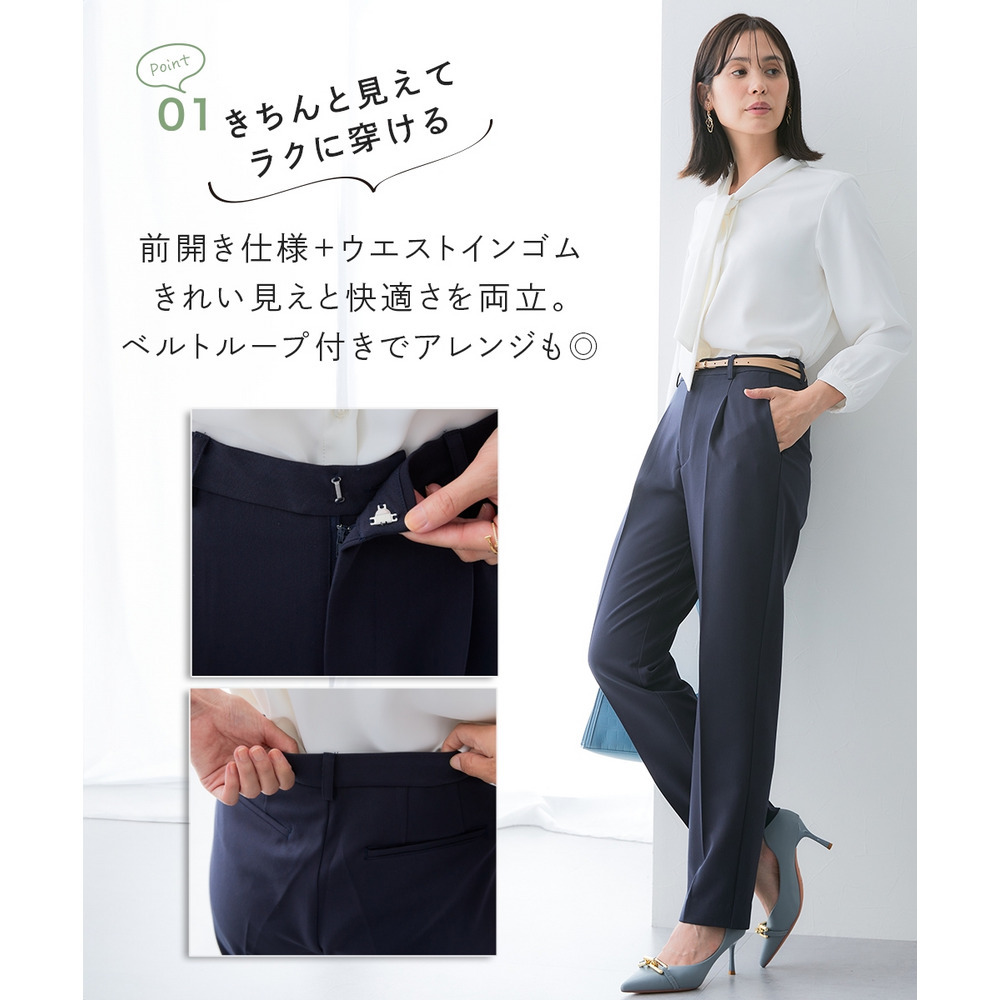 ・前開き仕様+ウエストインゴムでキレイ見えと快適を兼ね備えました