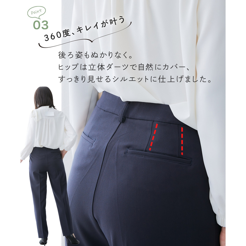 ・360度、キレイ見えが叶うようにヒップは立体ダーツで自然にカバー、すっきり見せるシルエットに仕上げました