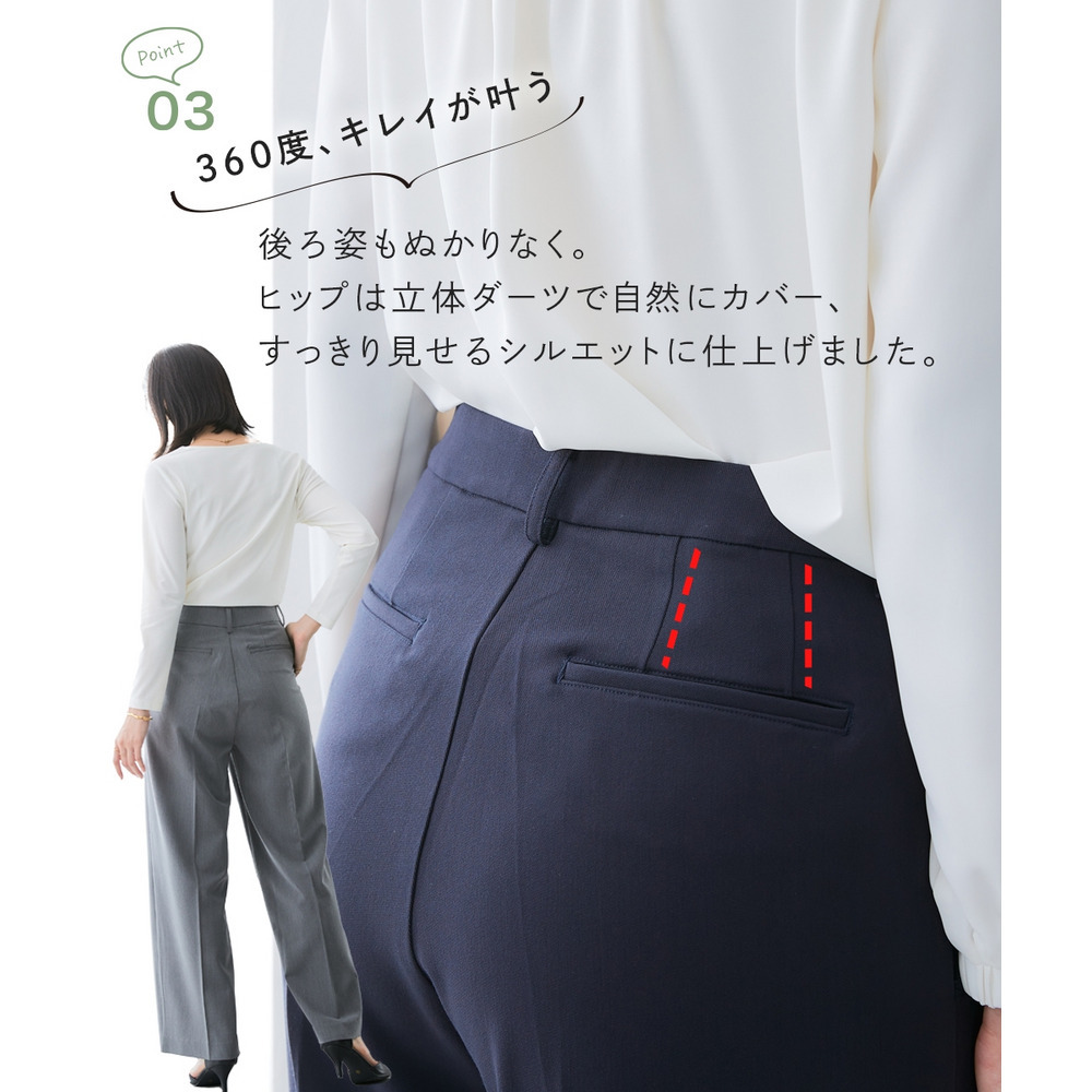 ・360度、キレイ見えが叶うようにヒップは立体ダーツで自然にカバー、すっきり見せるシルエットに仕上げました