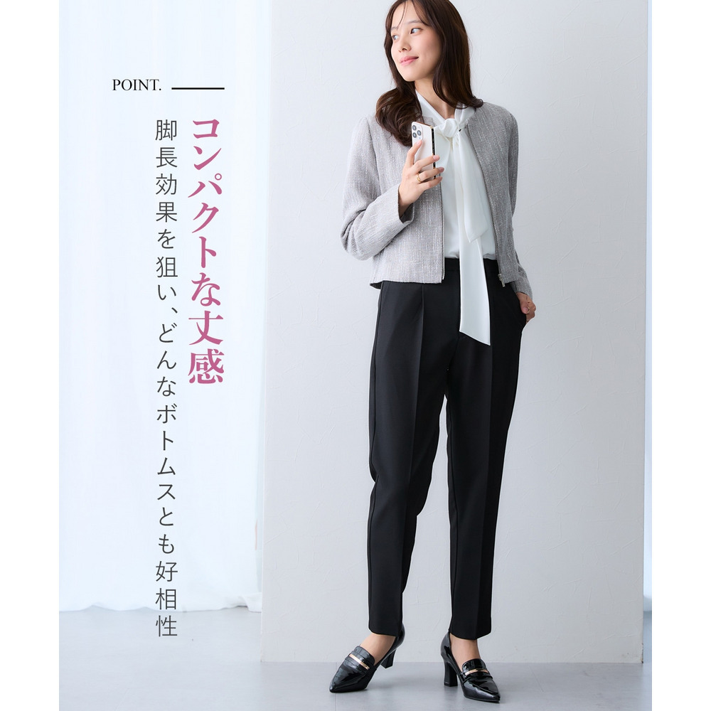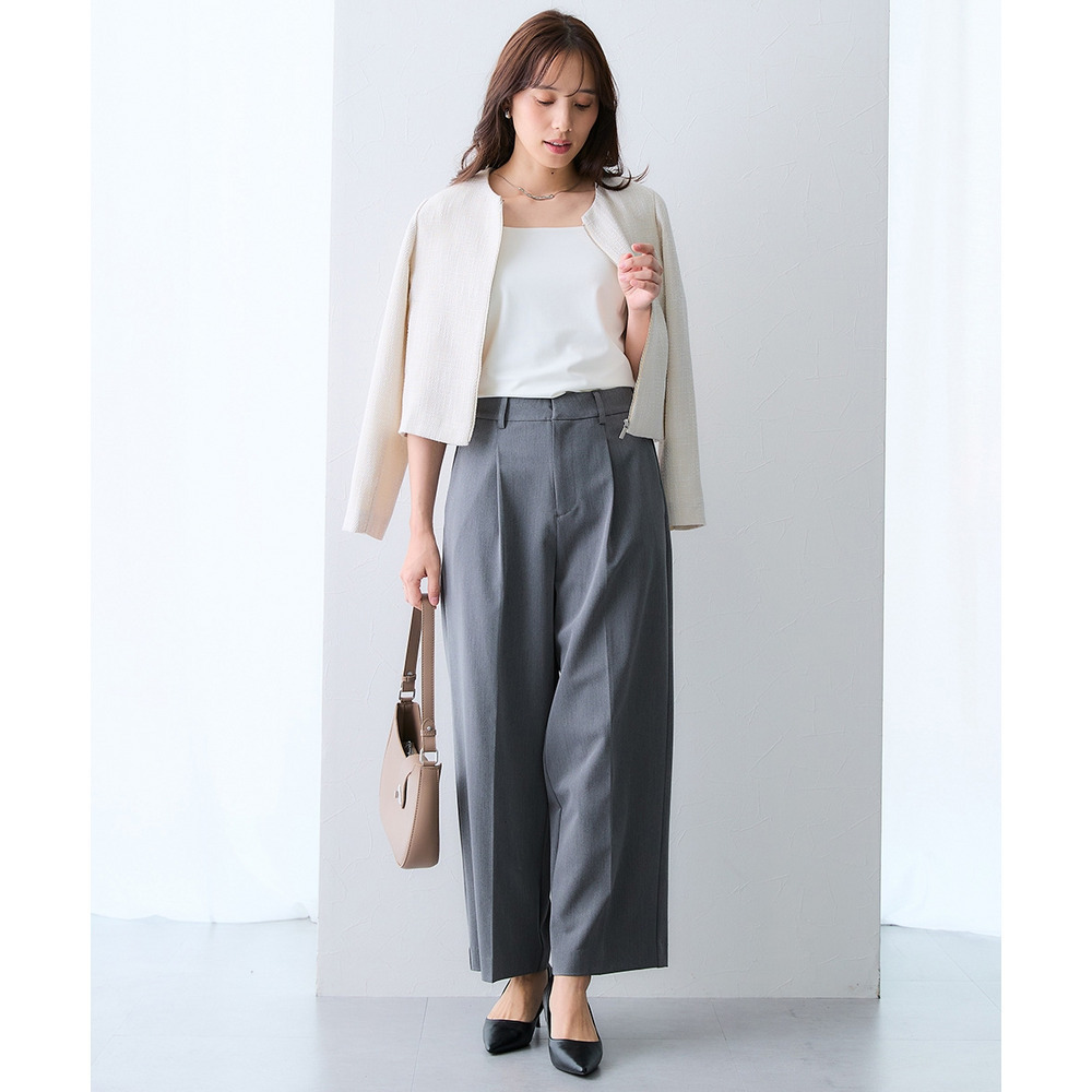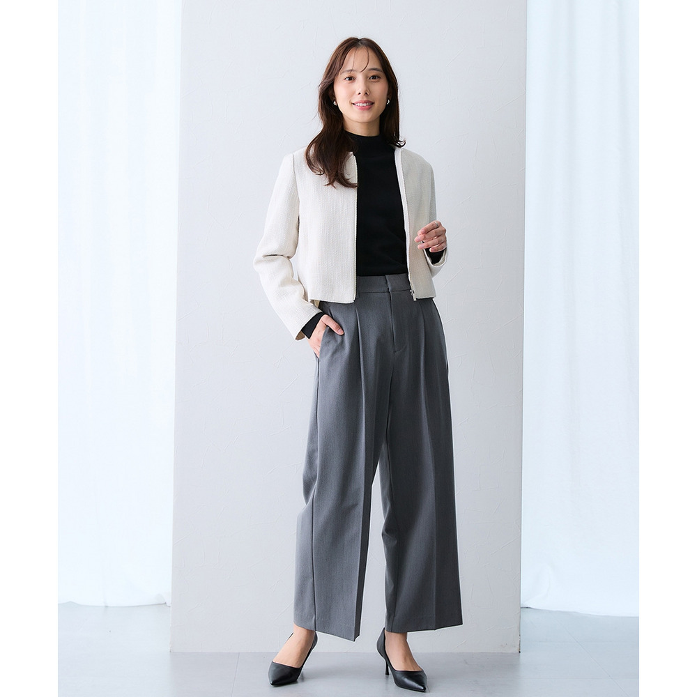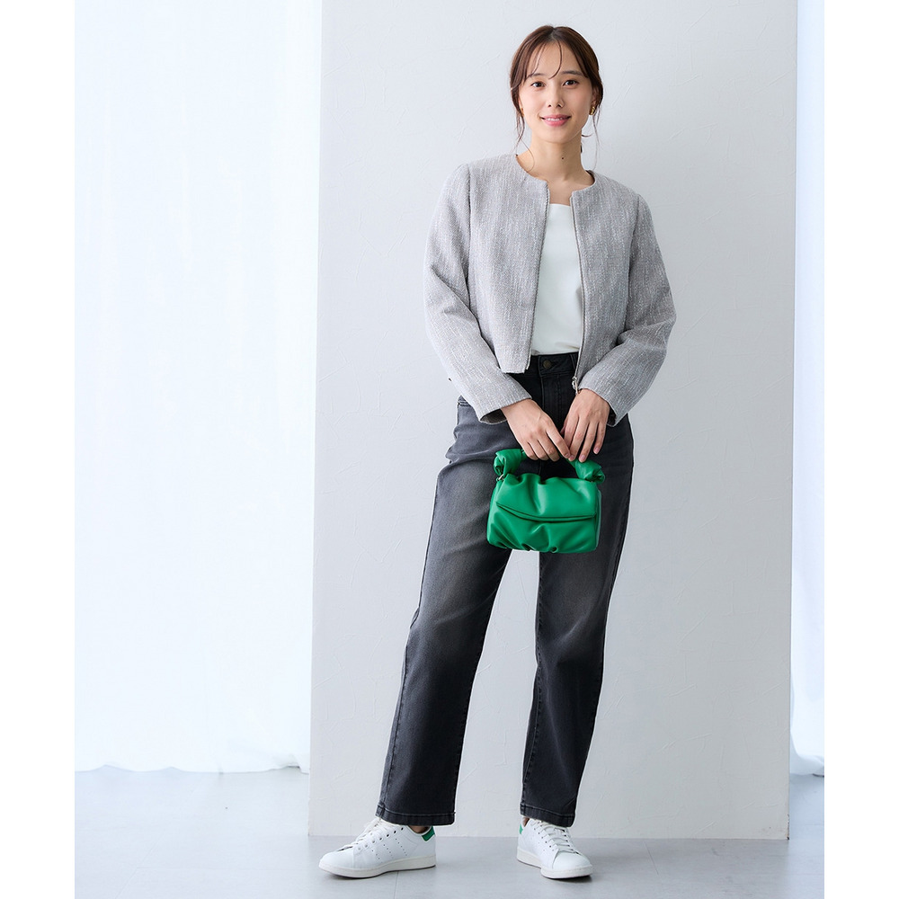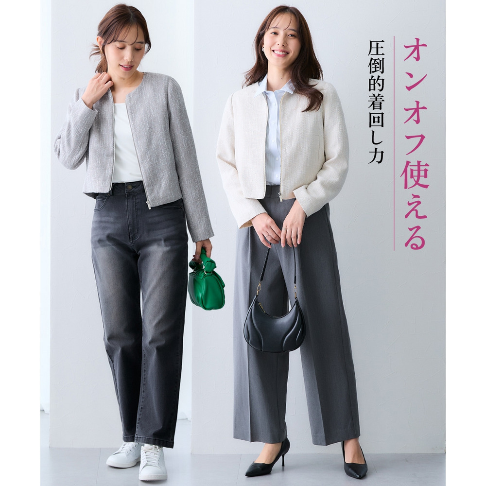 ボタンではなくジップ仕様を採用することで、コンサバになりすぎず、程よくトレンド感のある洗練された印象に仕上げています。