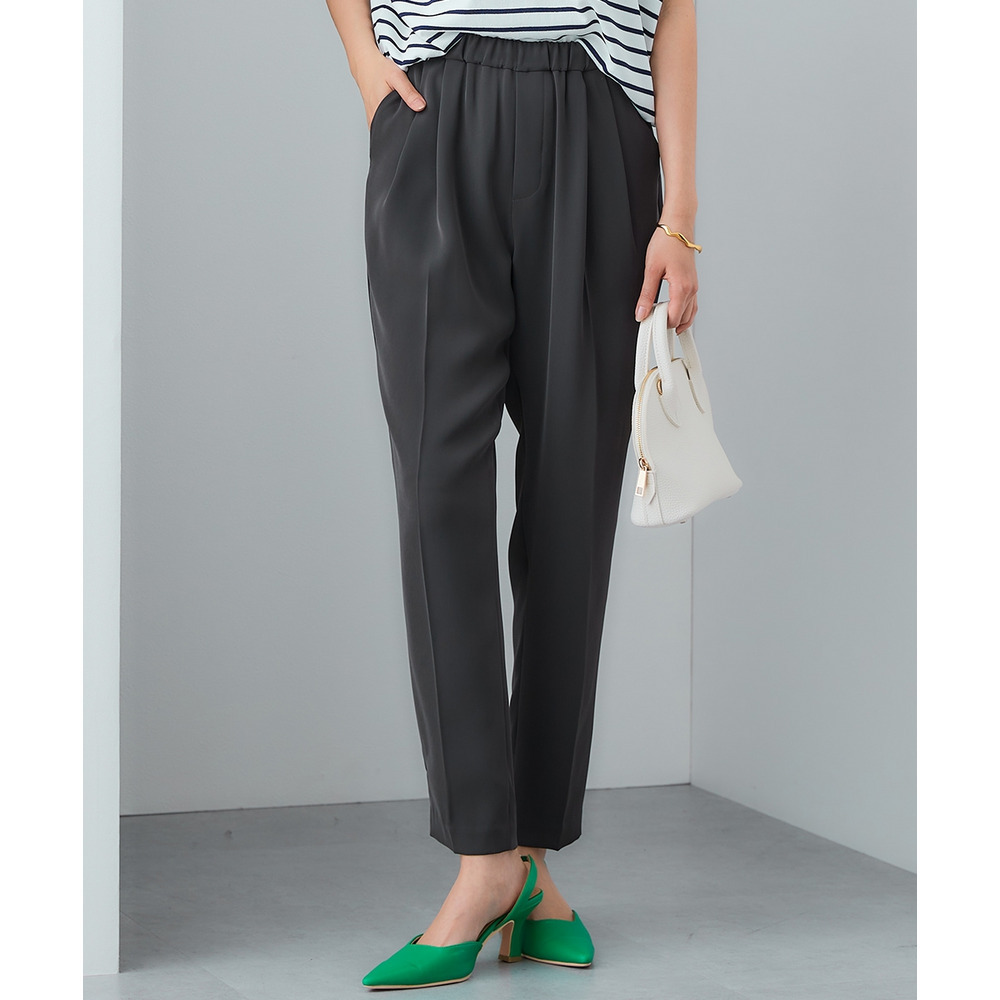 スタイリッシュでありながらイージーな穿き心地のタックテーパードパンツです。