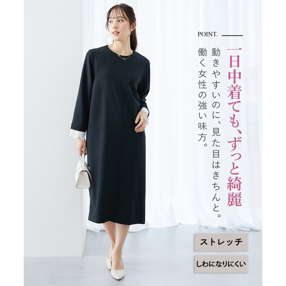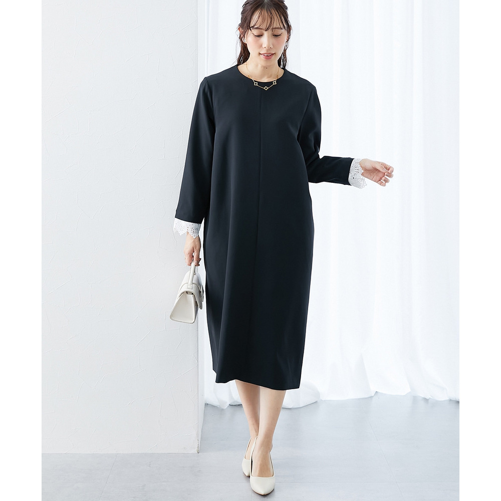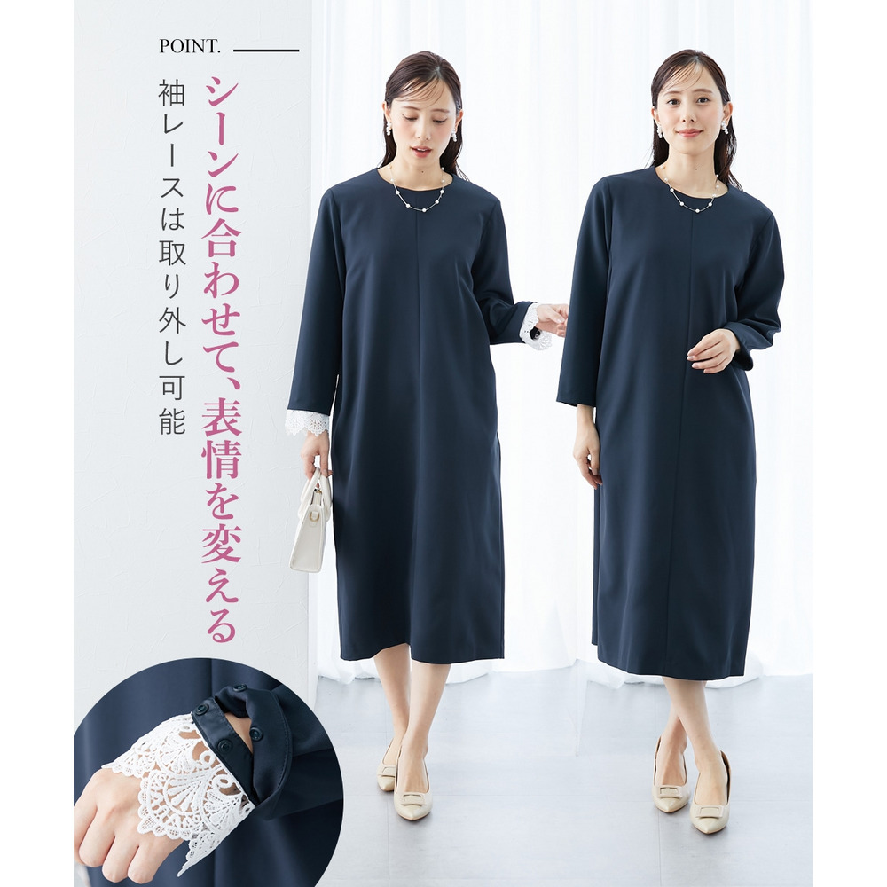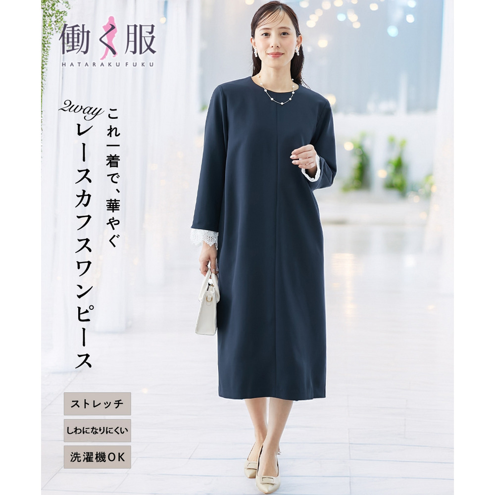 2WAYレースカフスワンピース(イージーケア・ストレッチ) 大きいサイズ