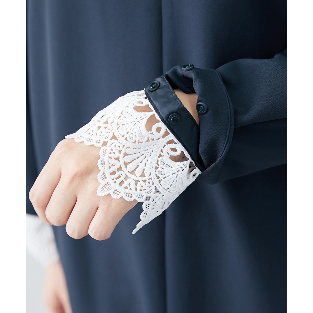最大の特徴である袖口のレースはボタンで簡単に取り外しが可能。
