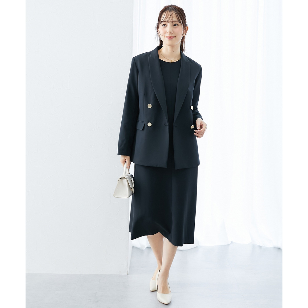 ネイビーのワントーンでまとめることで、知的で信頼感のあるオフィスカジュアルに。