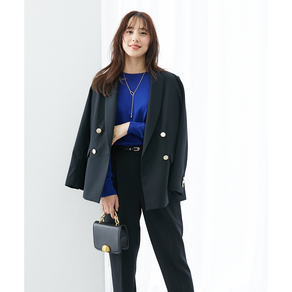 【Business Style】 シンプルなカットソーやタートルネックを合わせるだけで、知的で信頼感のあるオフィスカジュアルが完成。