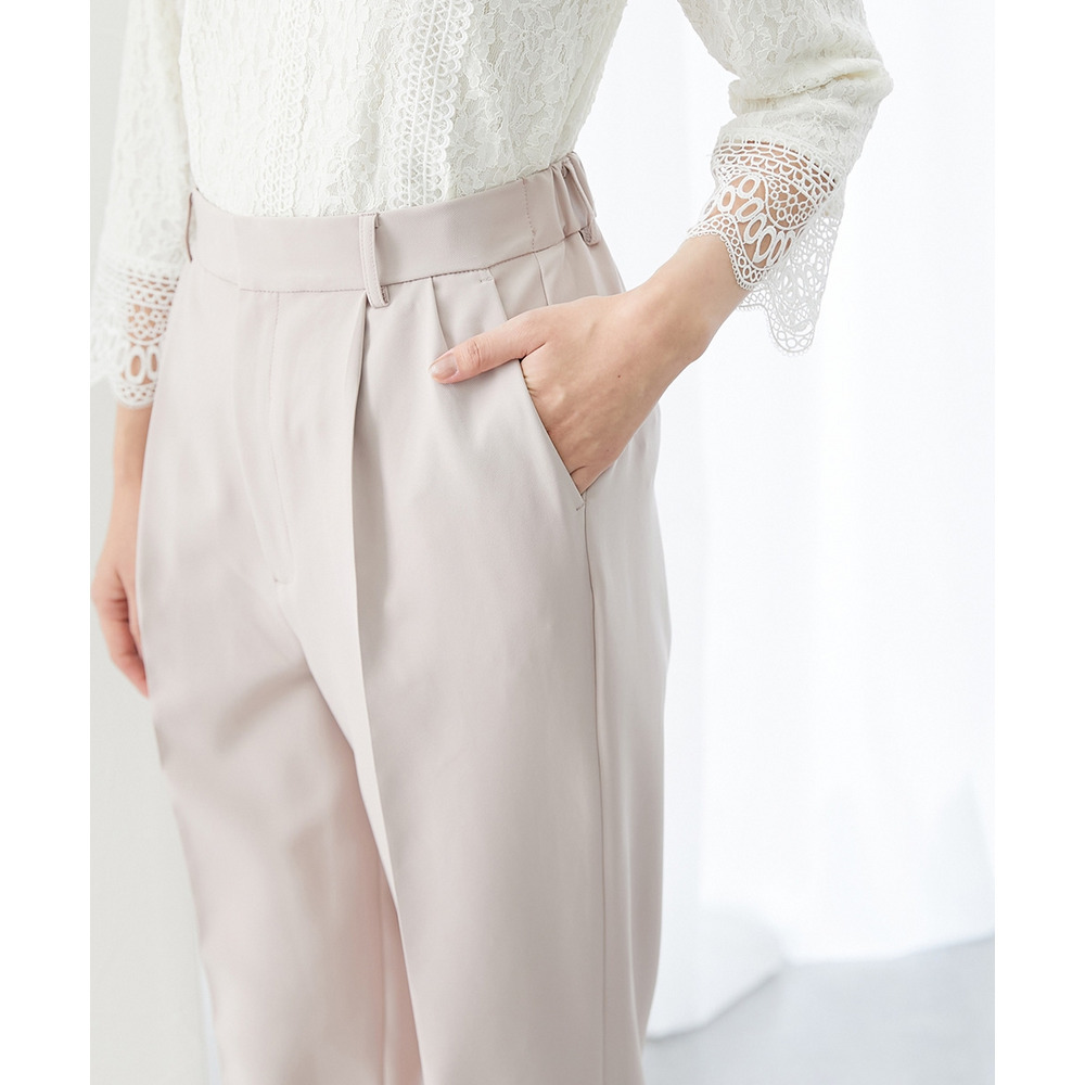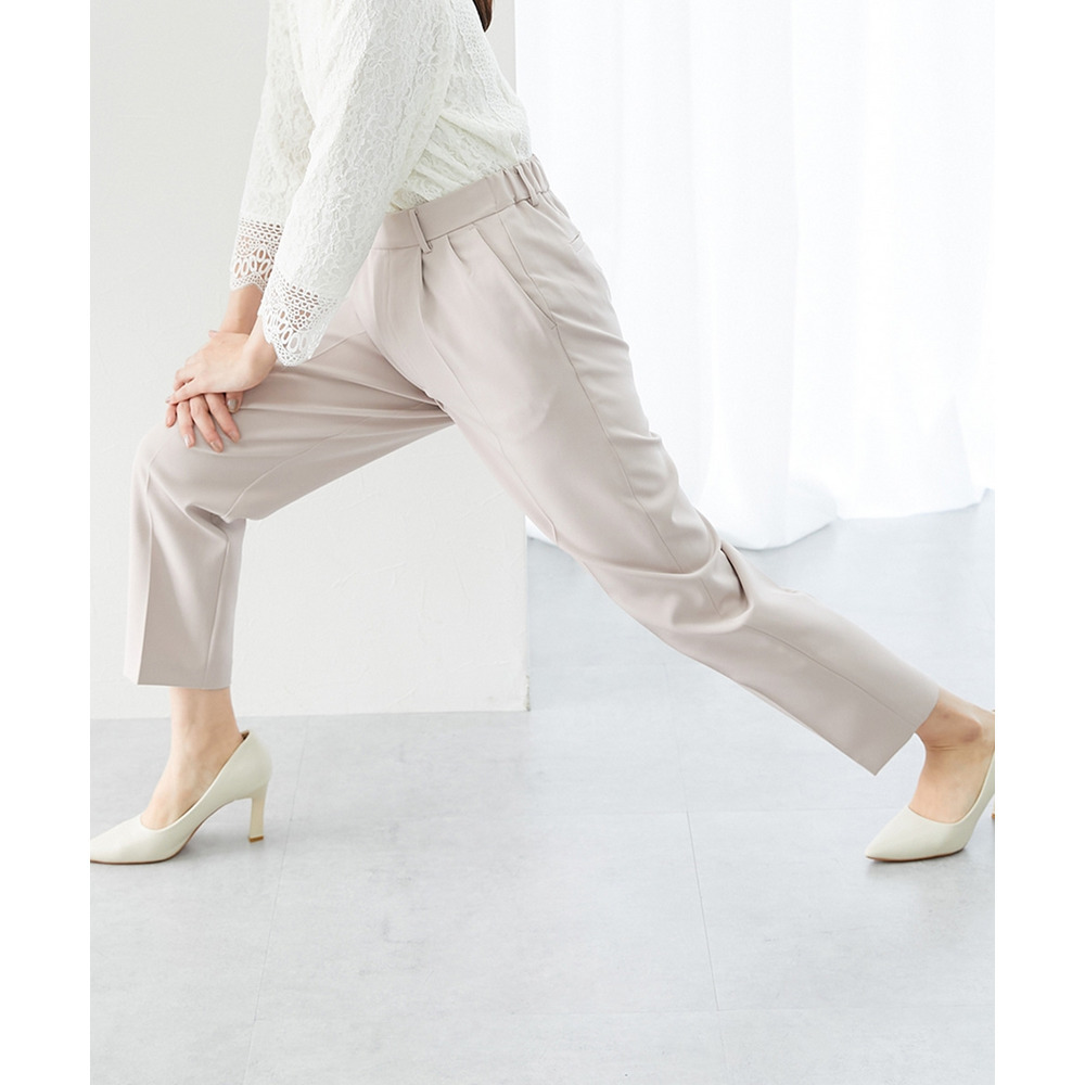 腰回りに程よいゆとりを持たせつつ、裾に向かって細くなるシルエットが脚長効果を発揮します。