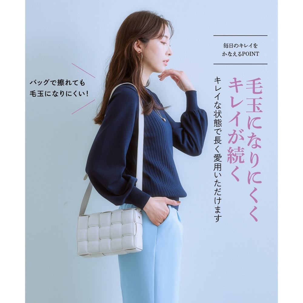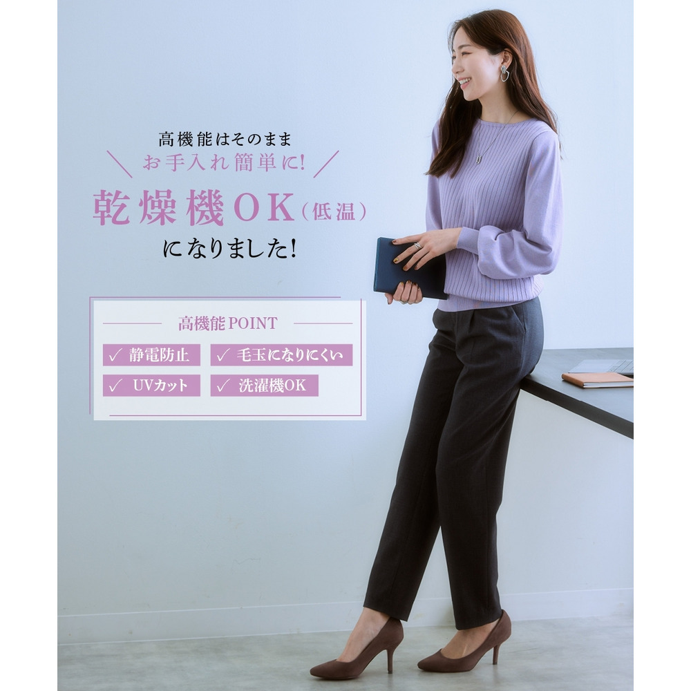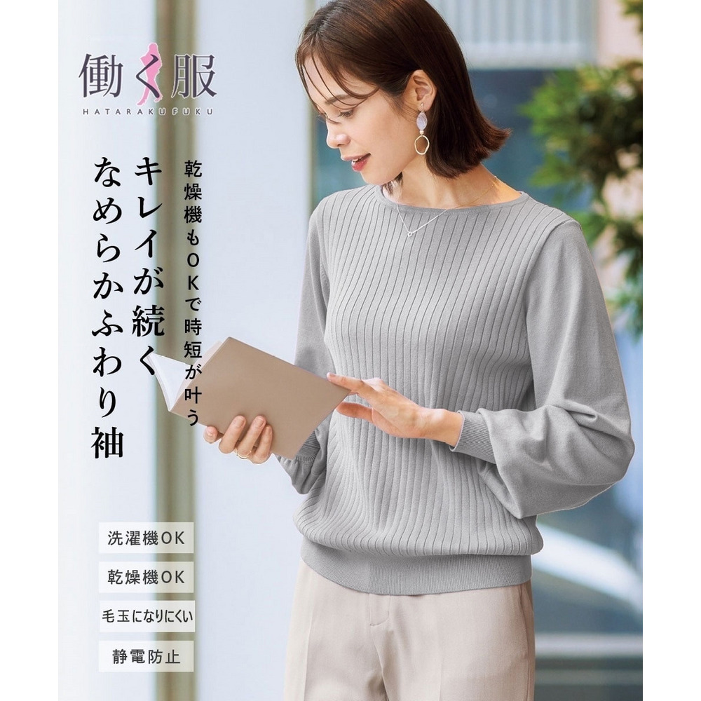 フロントワイドリブパフスリーブニット(乾燥機OK・ウォッシャブル・静電防止・毛玉になりにくい・UVカット) 大きいサイズ