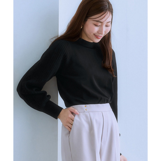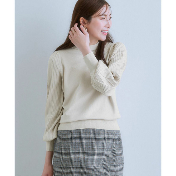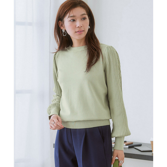 ・大人気のボリューム袖にケーブル柄をあしらったこだわりデザイン。