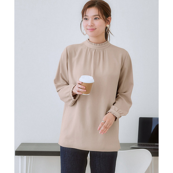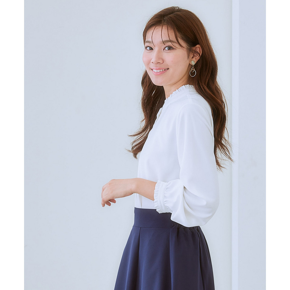 ・襟下と袖口にあしらったシャーリングデザインが繊細な雰囲気を演出。