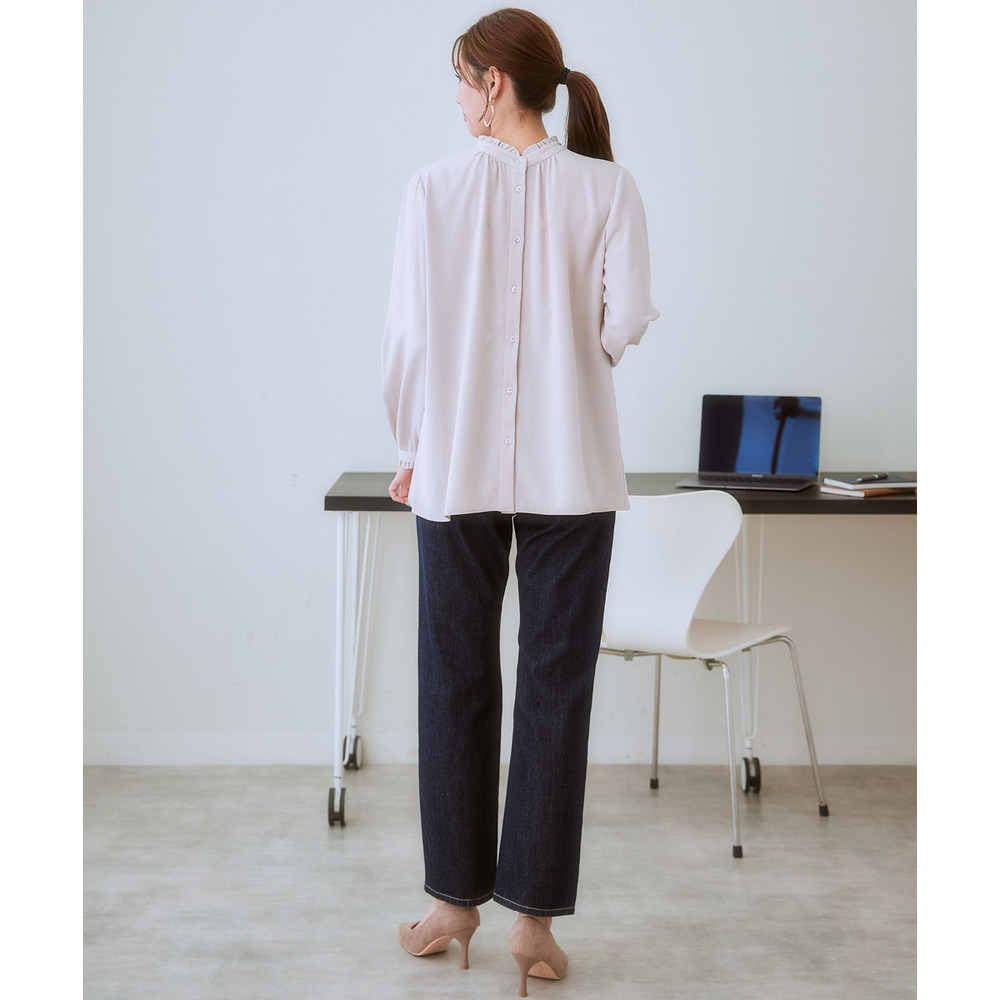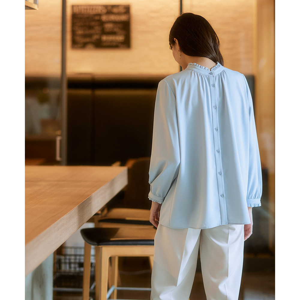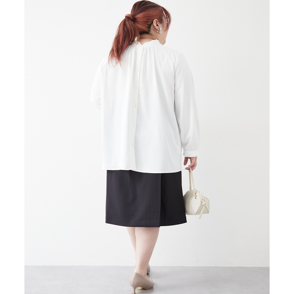 ・ボタン側を前にしたバンドカラーブラウスとボタン側を後ろにしたプルオーバー風ブラウスが楽しめる前後2WAY。