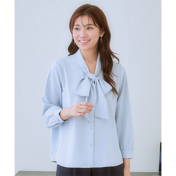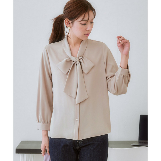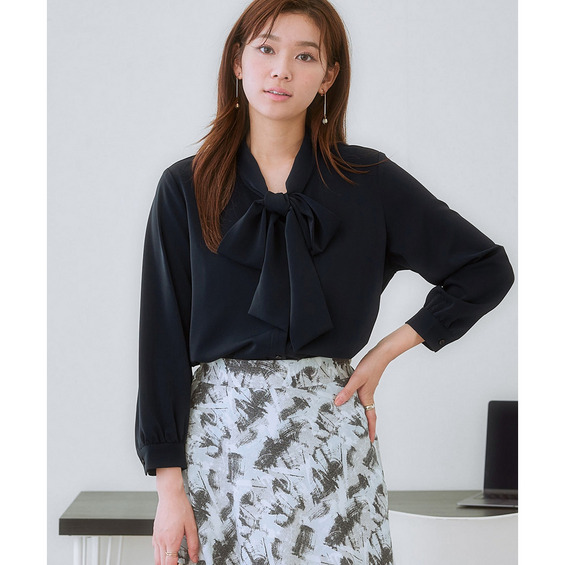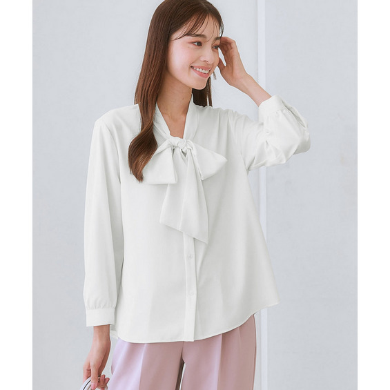 ・衿からつながっているリボンで遊べるボウタイブラウス。