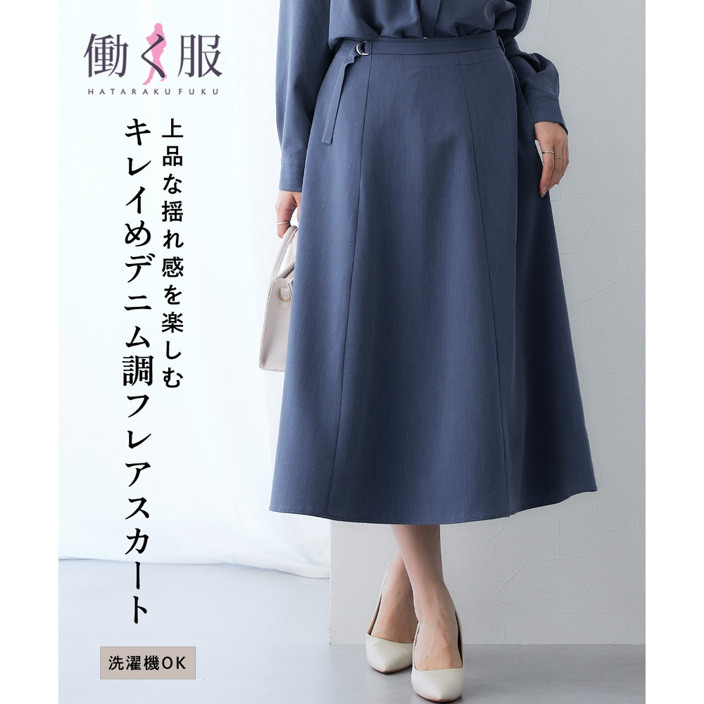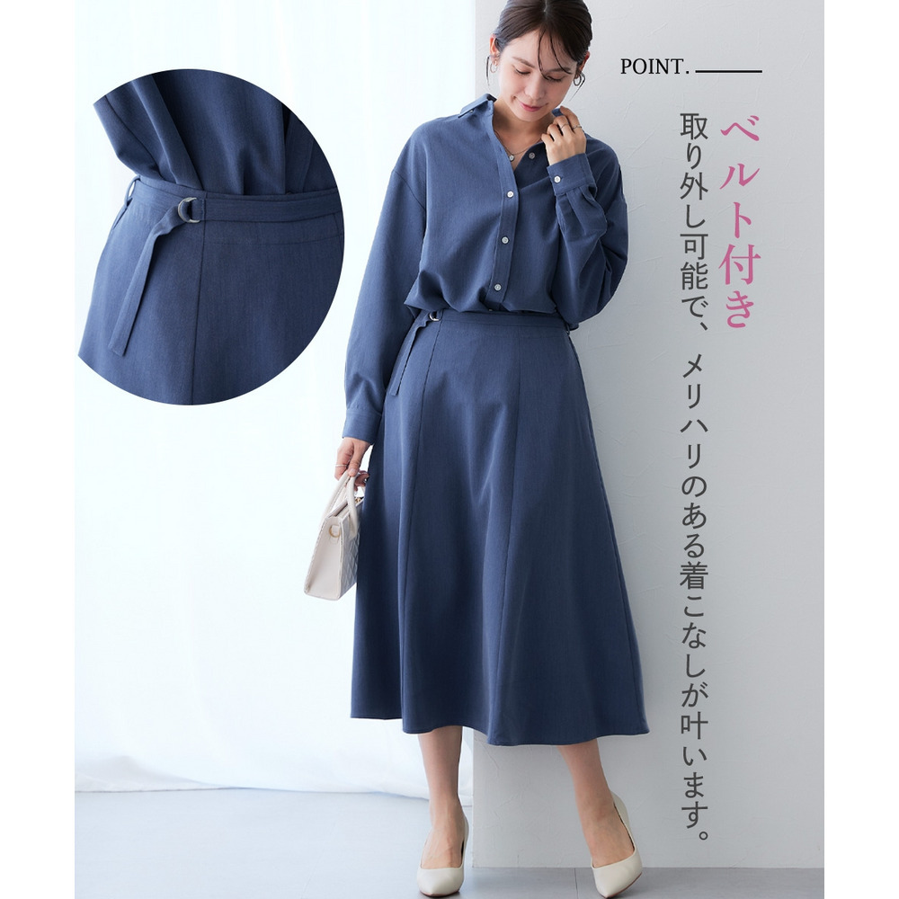 • シャンブレーベルト付きフレアスカート セットアップ対応 大きいサイズ17