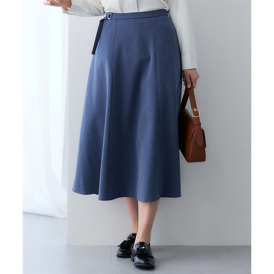 • シャンブレーベルト付きフレアスカート セットアップ対応 大きいサイズ10