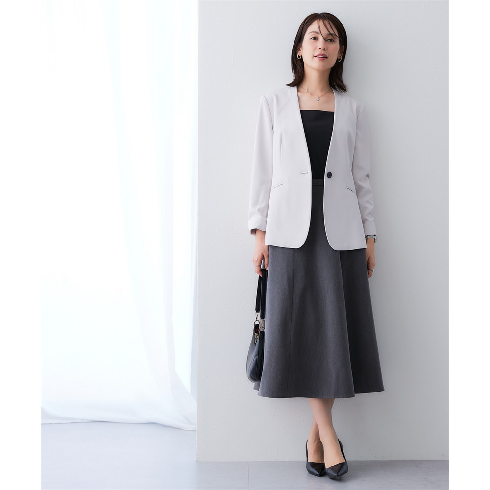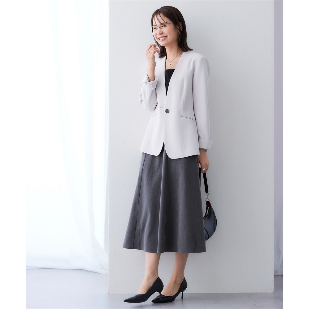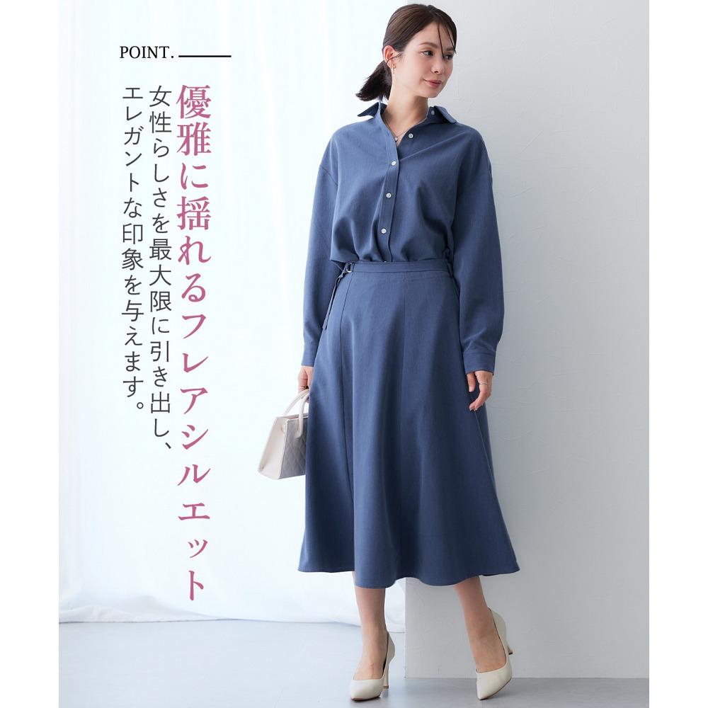 動くたびに美しく揺れる裾が、働く毎日に華やかさと自信を添えてくれる一着です。