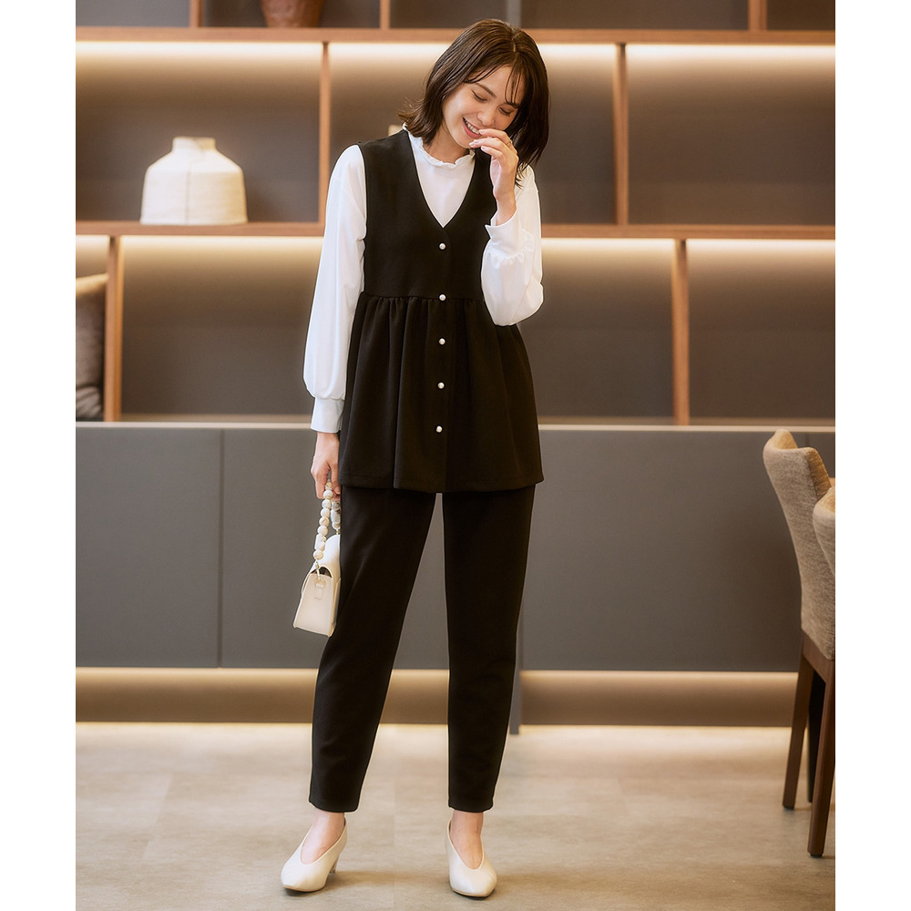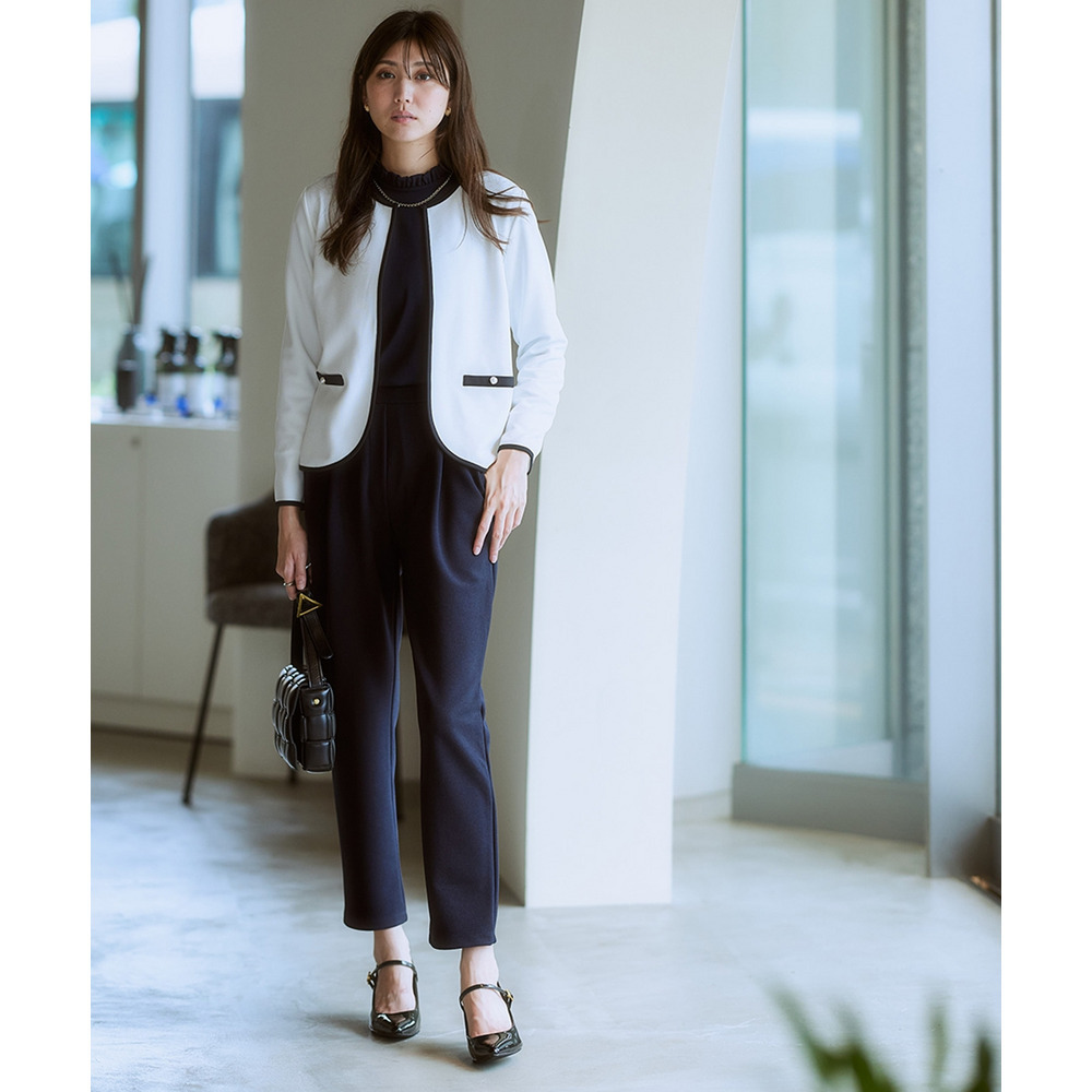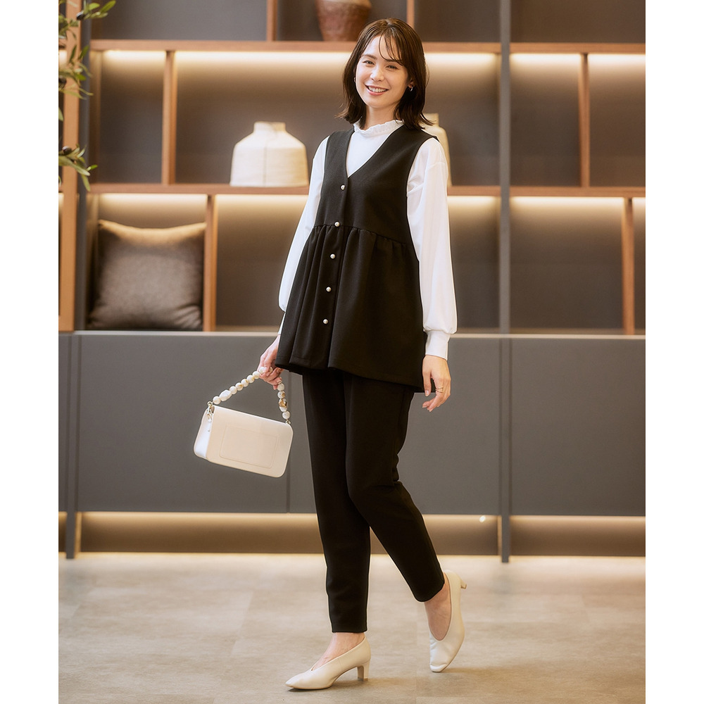 ・同素材のジャケットやジレと組み合わせればオケージョンにもなるきれいめスタイルが完成。