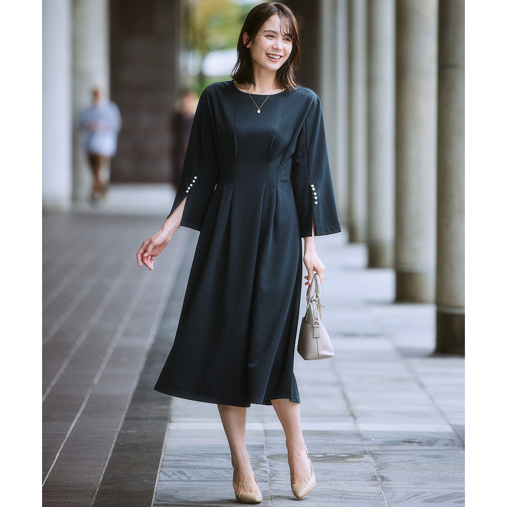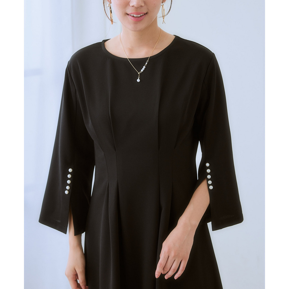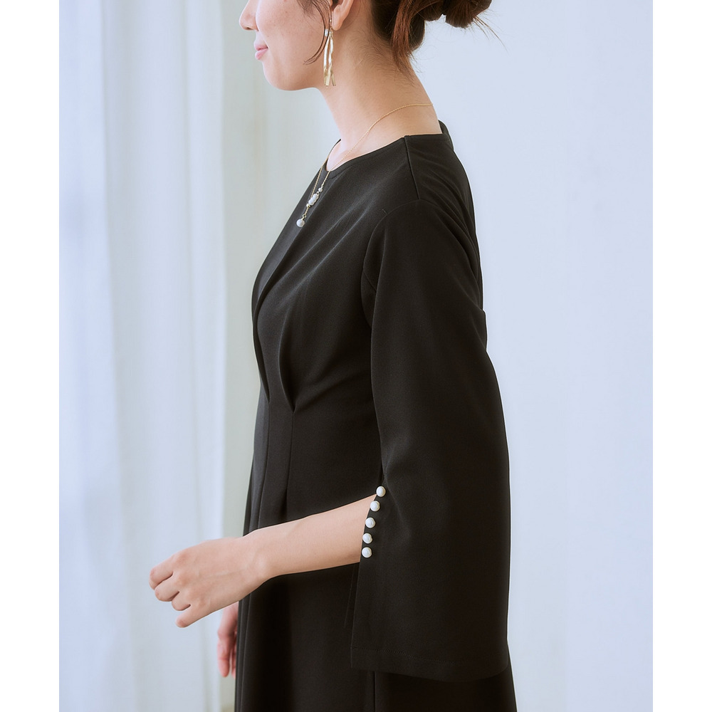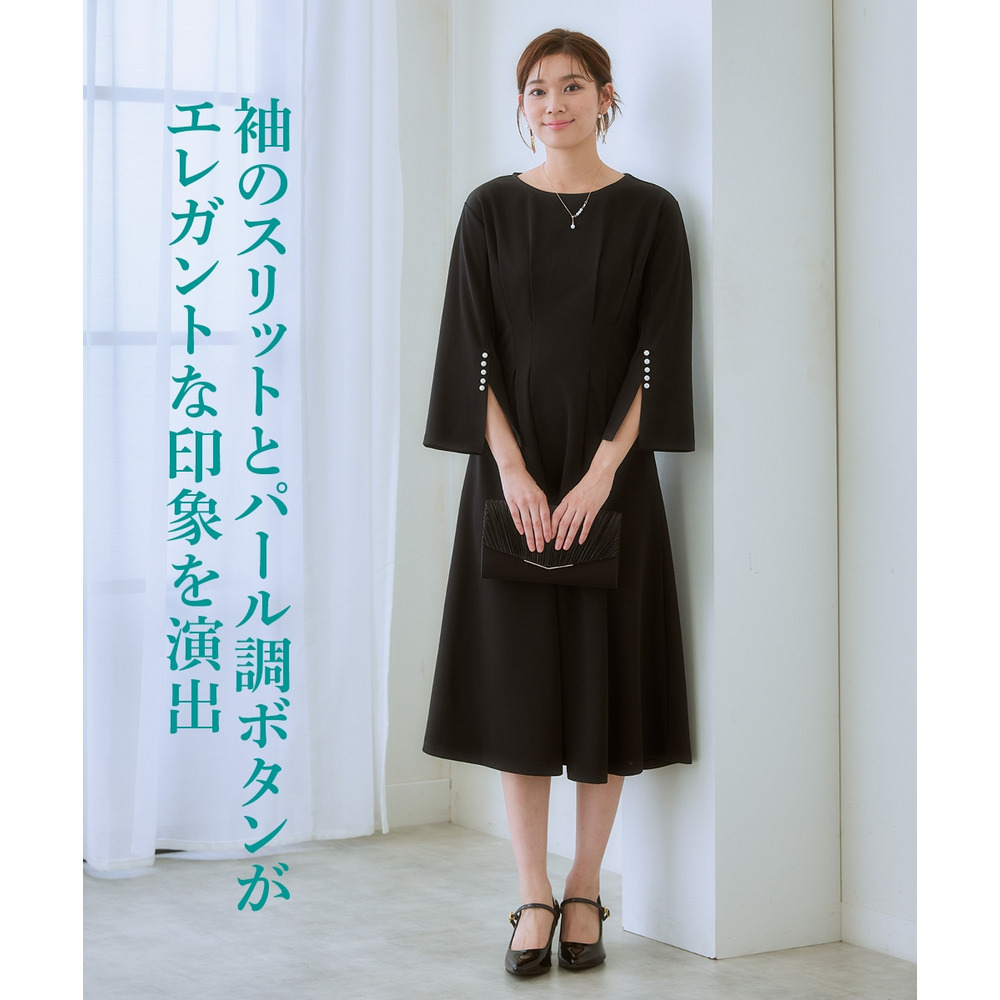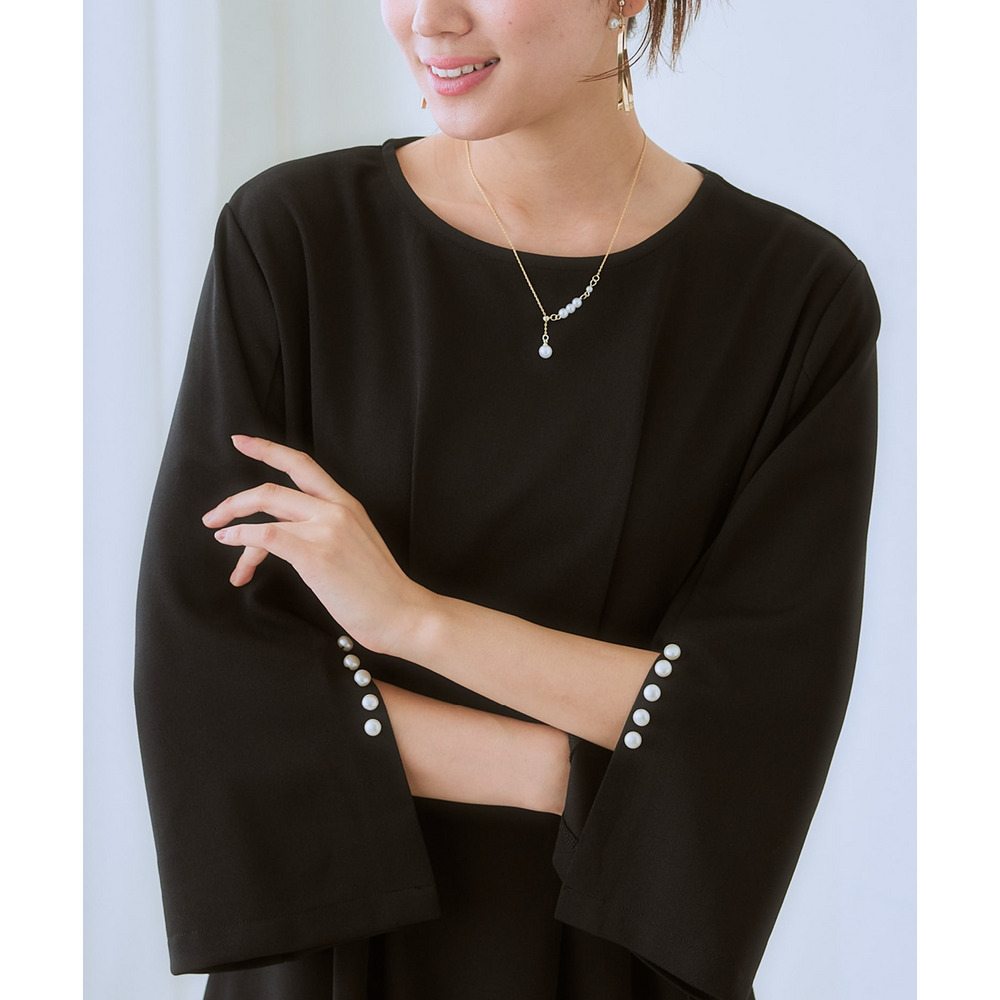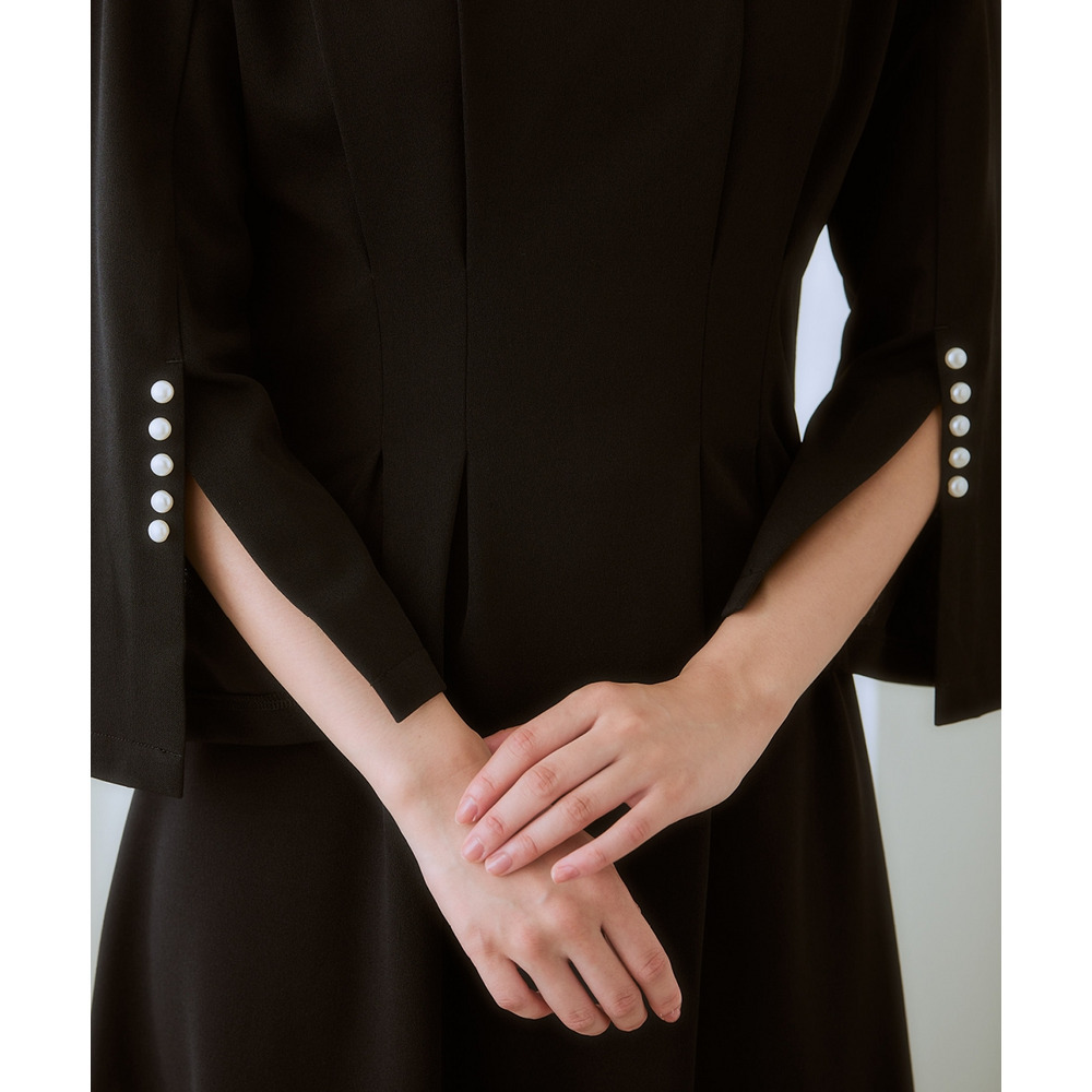 ・袖のスリットとパール調ボタンのデザインがエレガント。