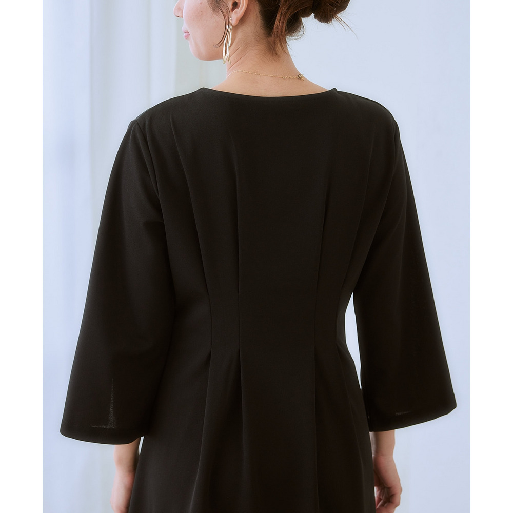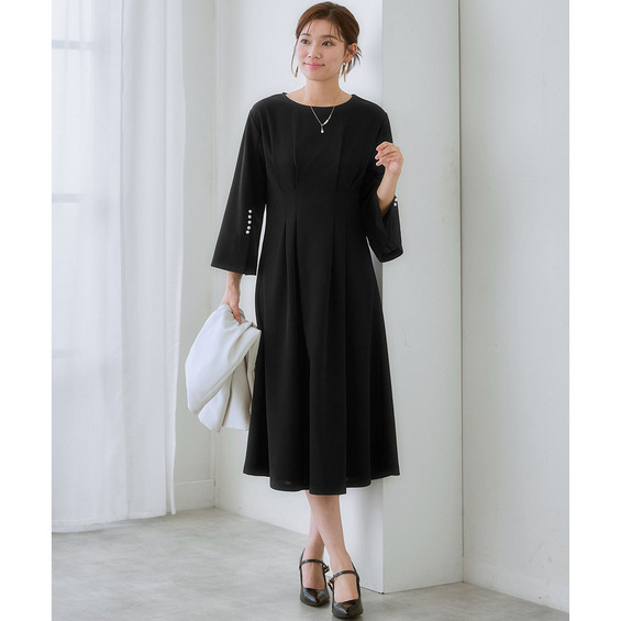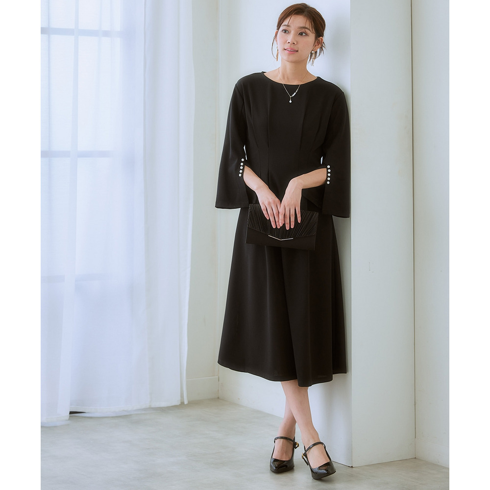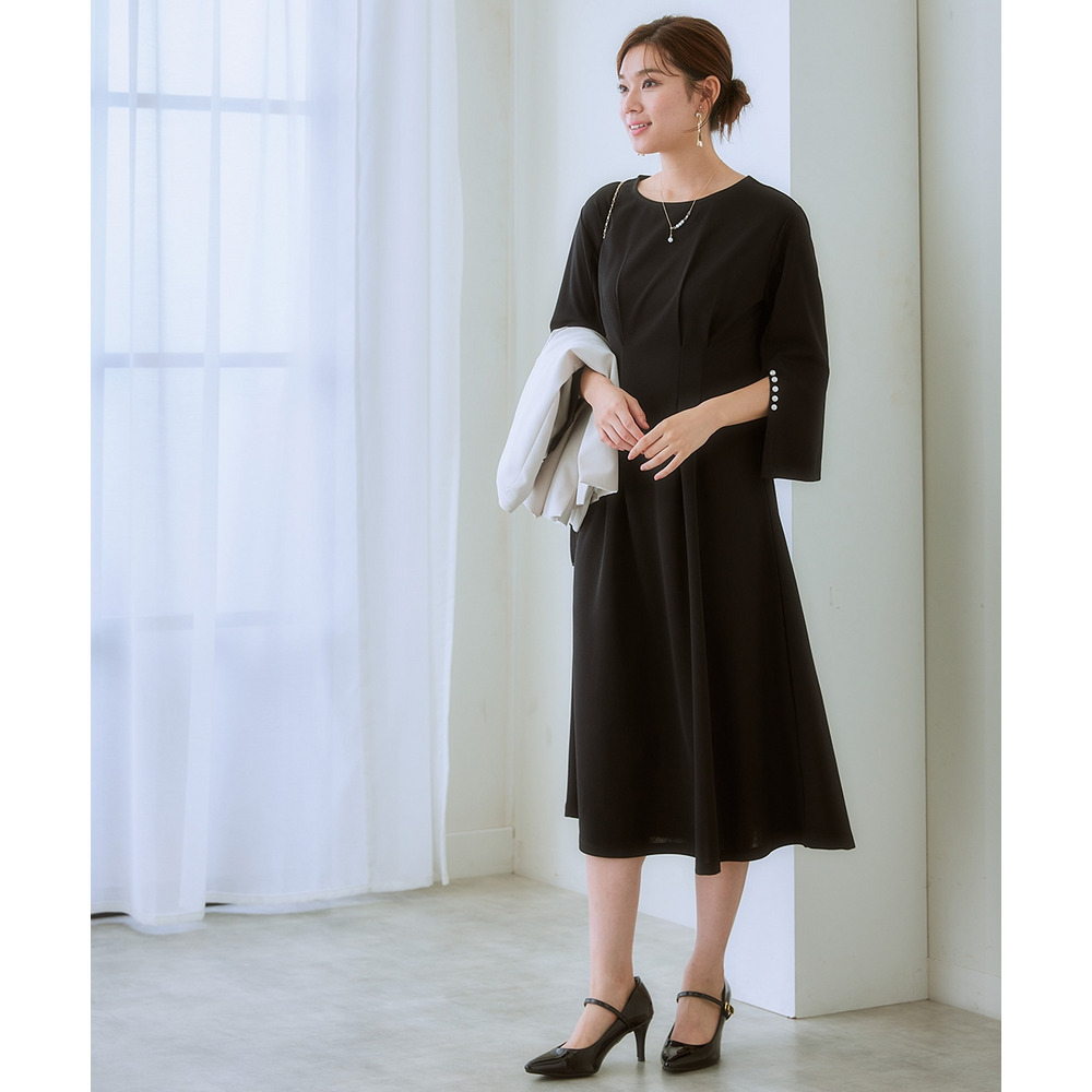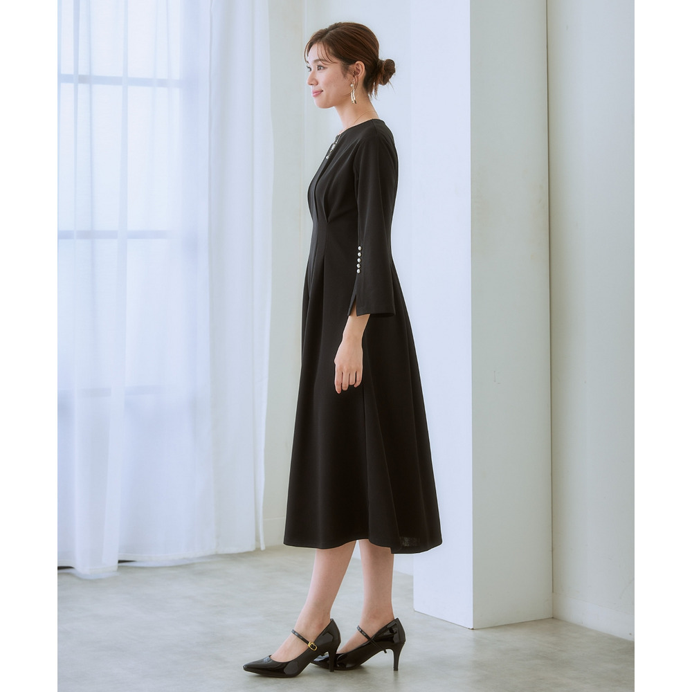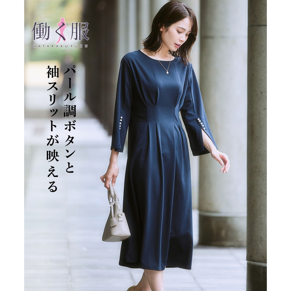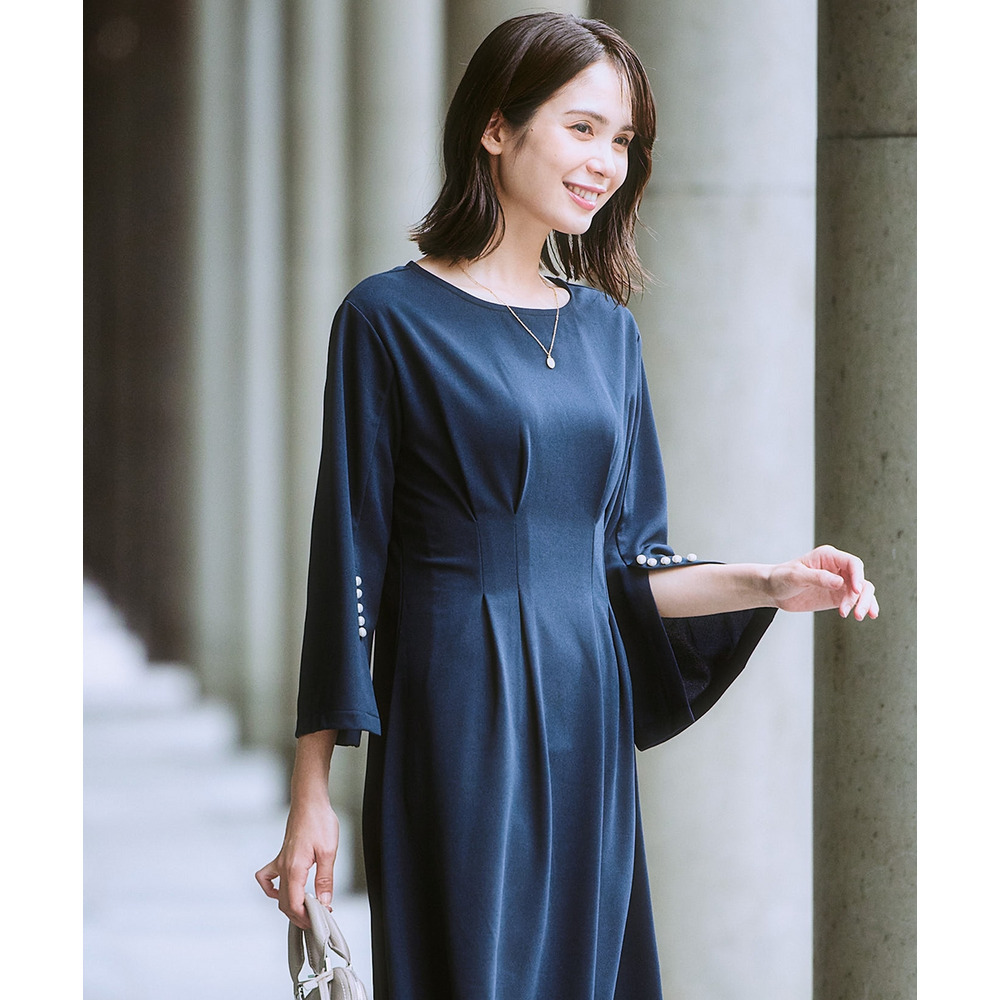 ・袖のスリットとパール調ボタンのデザインがエレガント。