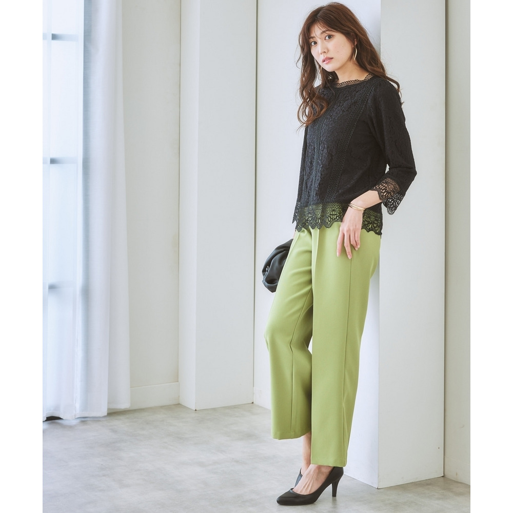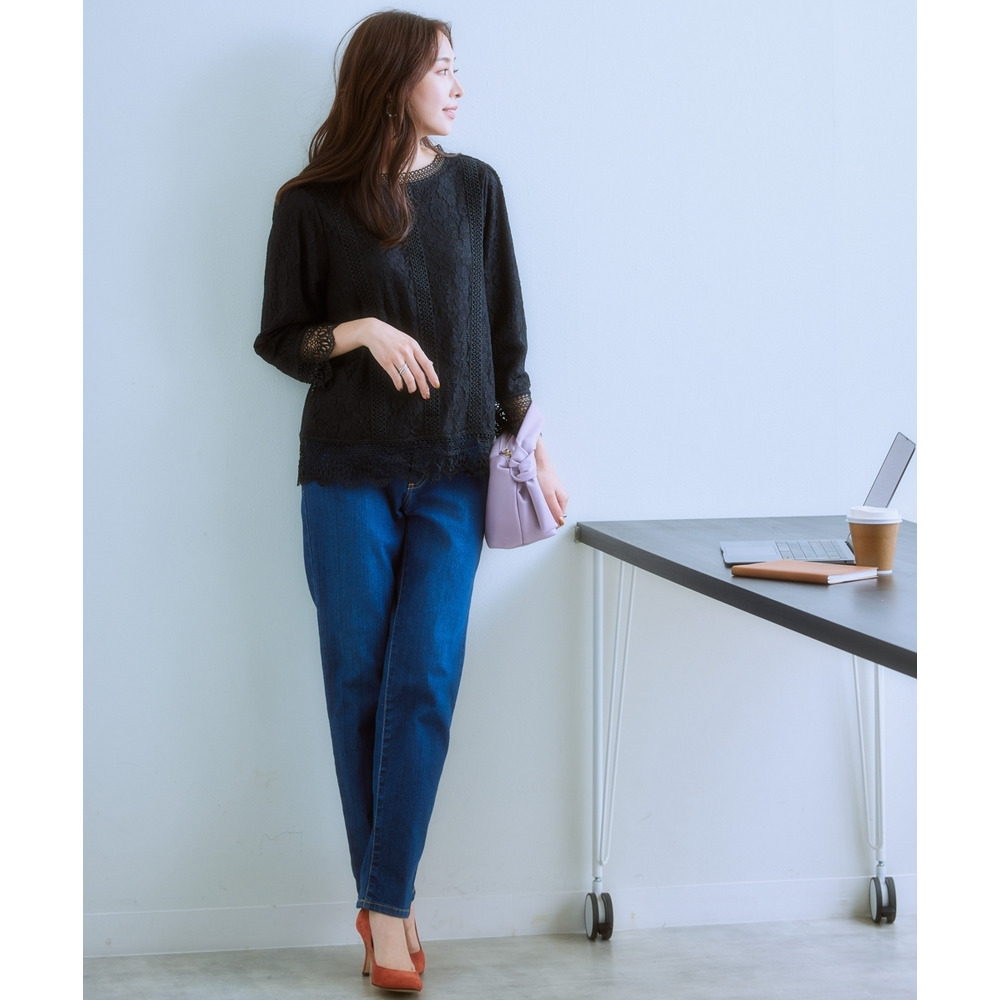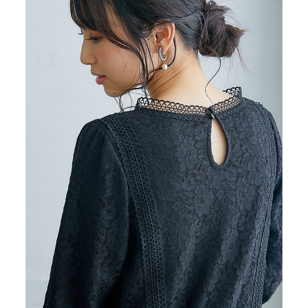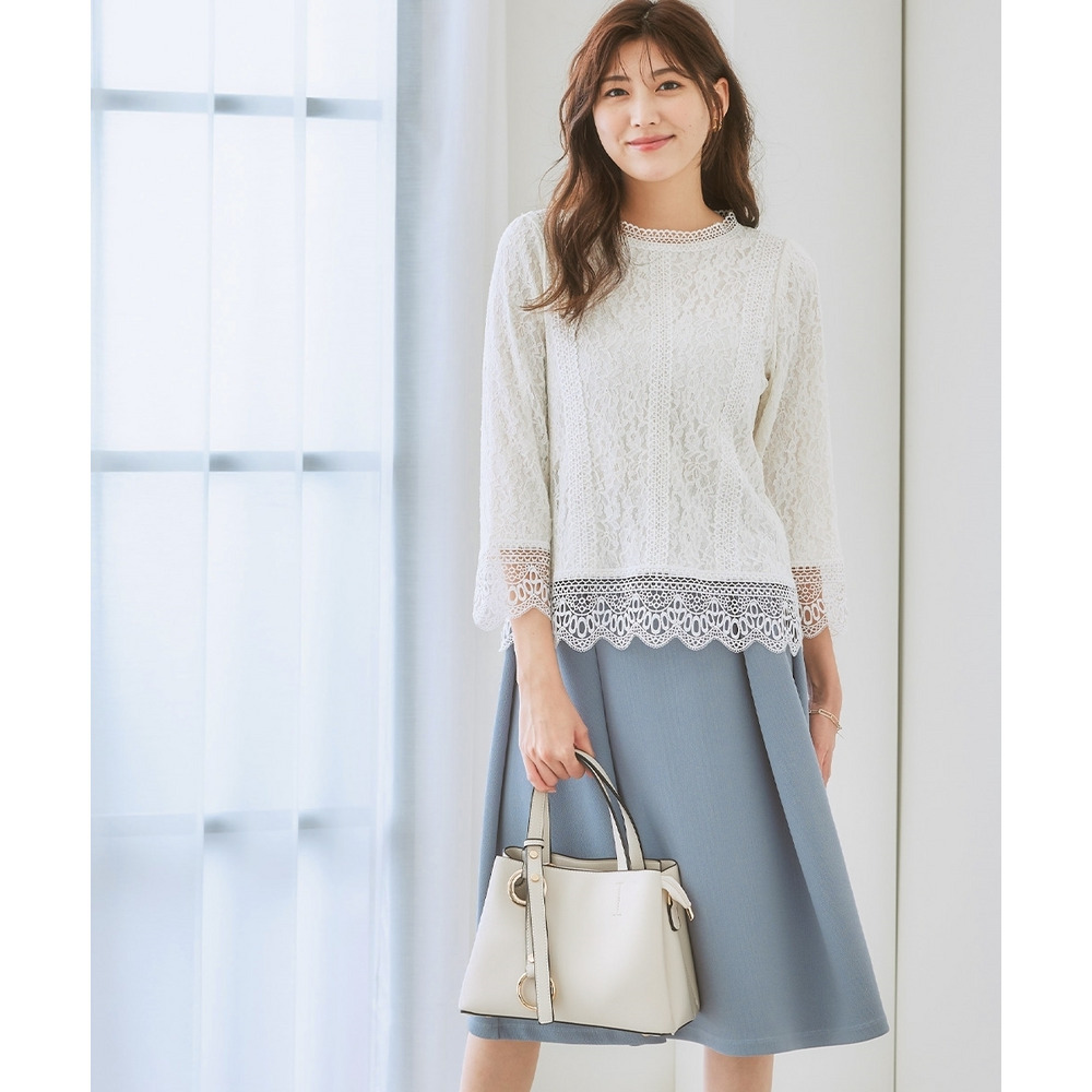 【カットソー裏地付】総レース8分袖ブラウス(ウォッシャブル) 大きいサイズ